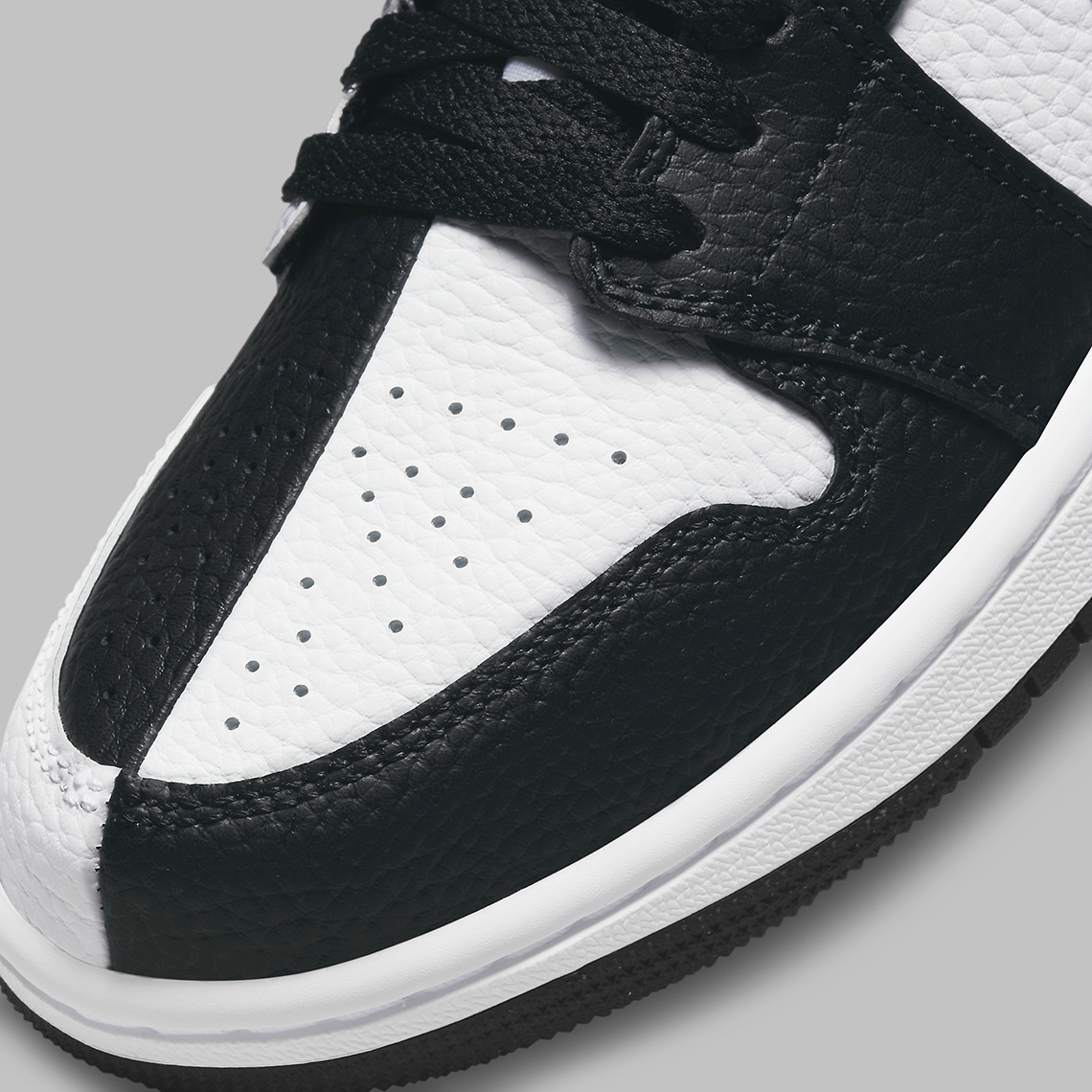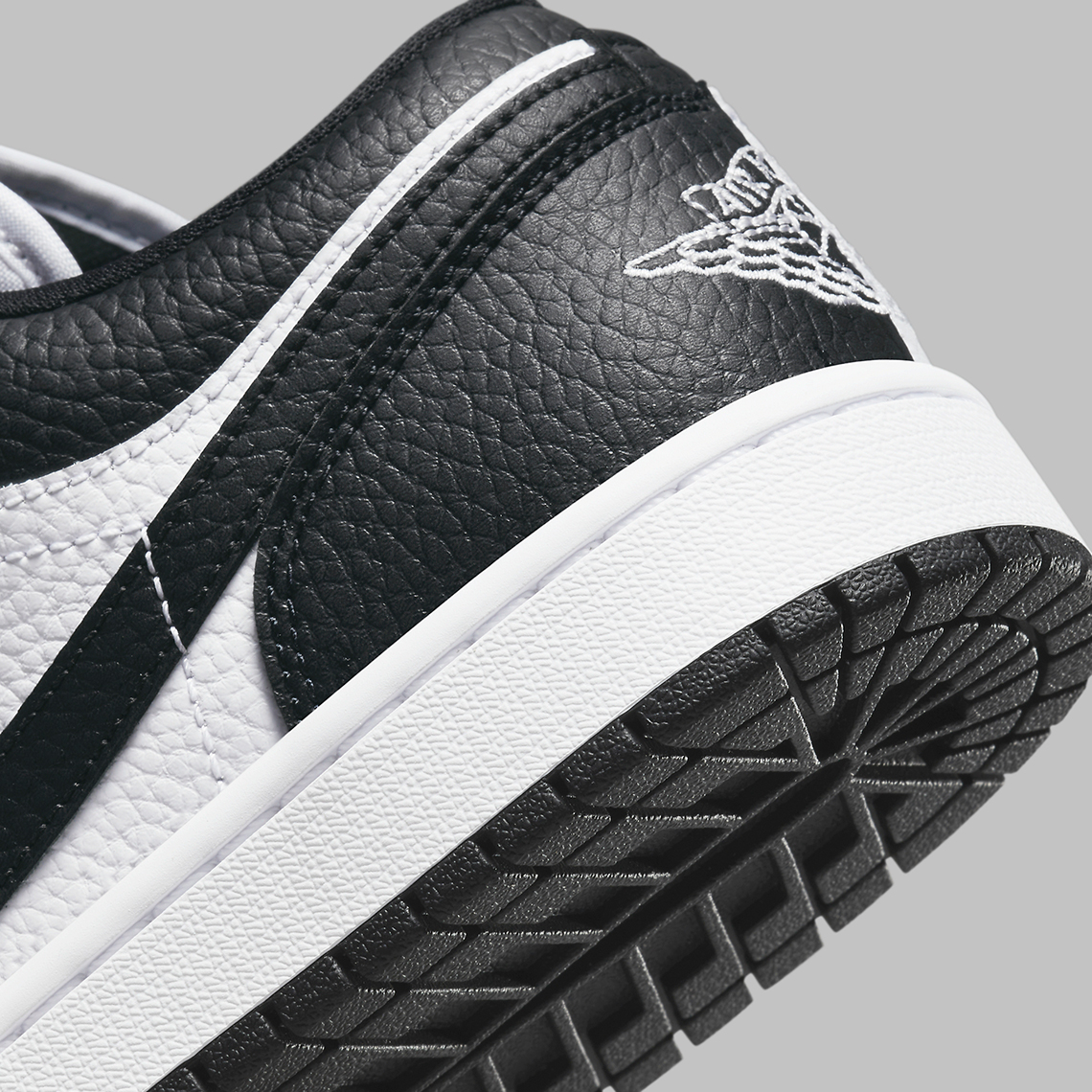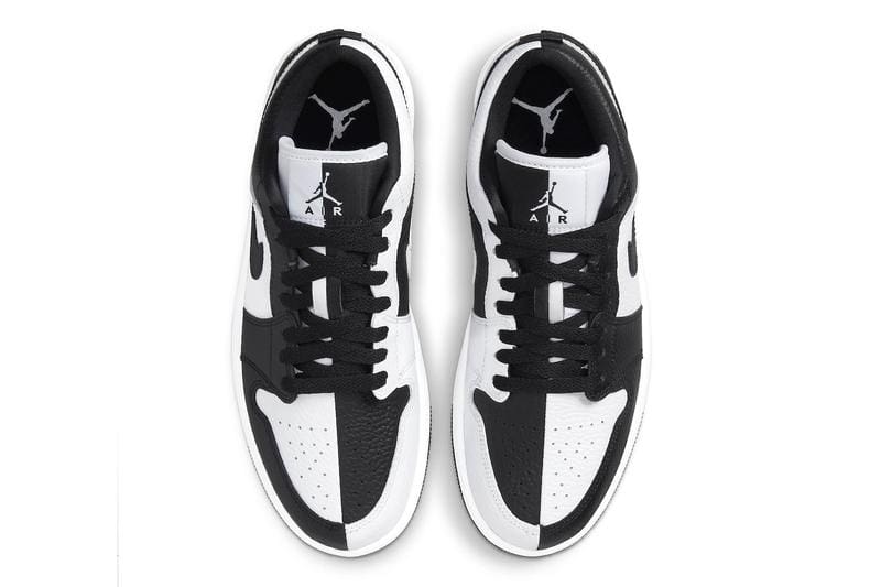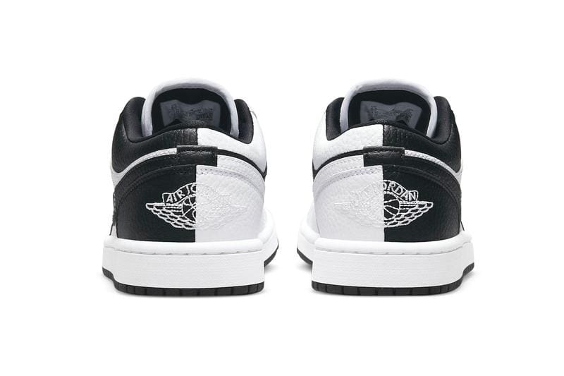 Referencing 2018u2019su00a0Air Jordan 1 High OGu00a0u201cHomage,u201d the upcoming offering features an interesting split design. The Air Jordan 1 Low u201cHomageu201d features full tumbled leather construction with a white base and black overlays on the lateral sides, and then reversed on the medial sides. The reversed design is continued on the nylon tongues marked with Jumpman tongue tags. Elevating the shoe are white midsoles paired with contrasting black rubber outsoles.