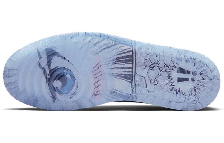 The ball-and-wings insignias that are stitched into the rear are blended in with its cool backdrop. Down below, the outsoles are made with a translucent exterior which allows you to see through to the anime graphics that are printed throughout. An oversized eye arrives in the forefoot while the exclamation points and an explosive scene is planted on the heel.