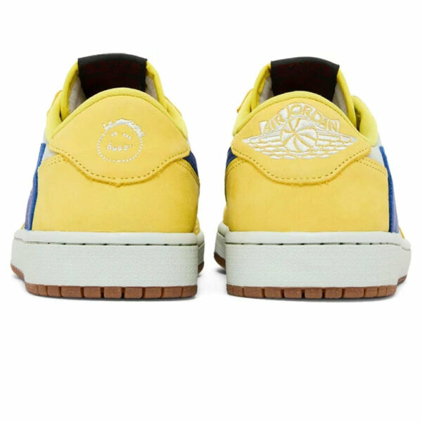 Travis Scott x Jordan 1 Low OG Canary Featuring a Canary, Racing Blue, Light Silver, and Medium Brown color scheme inspired by Travis Scott’s high school Elkins High Knights. Signature elements such as the reverse Swoosh and Cactus Jack branding remain consistent with previous releases. The shoe features a White midsole with Nike Air cushioning in the heel and a Gum Medium Brown rubber outsole completing the design.