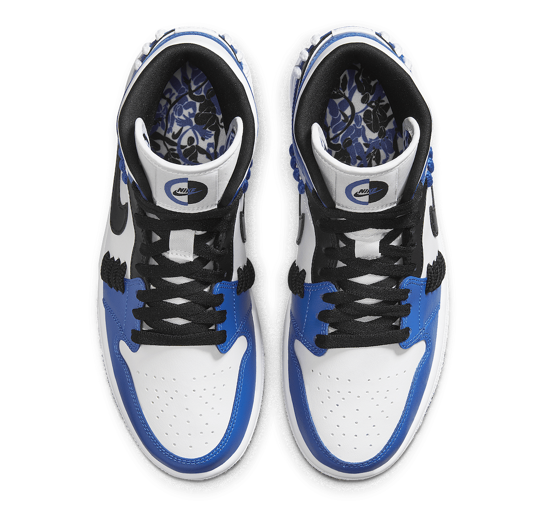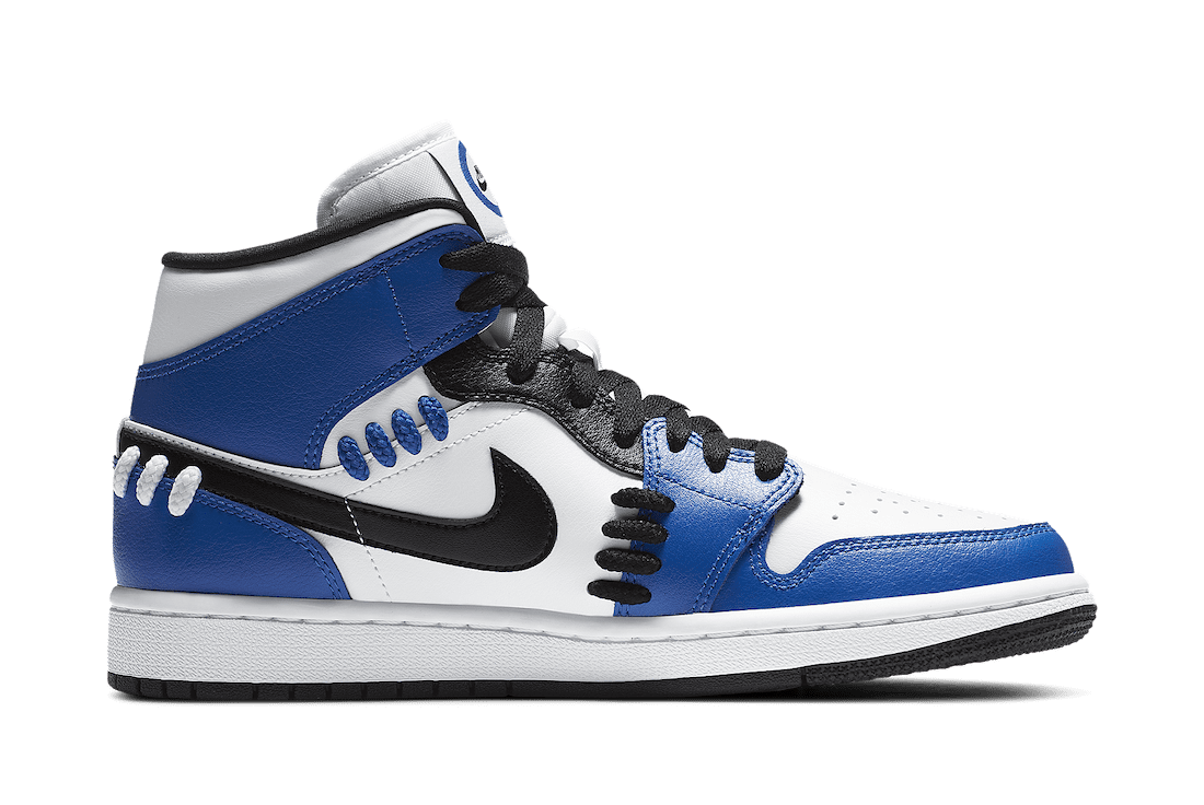 Dubbed the Air Jordan 1 Mid u201cSisterhoodu201d, this womenu2019s offering of the Jordan 1 Mid dons an all smooth leather upper in White, Game Royal, and Black with the highlight of this Jordan 1 Mid being the new interwoven laces placed on the side panels and heel. A white rubber midsole, new Nike branding on the tongues, and a black rubber outsole wrap up the look
