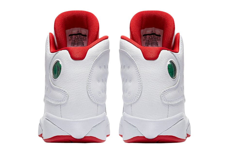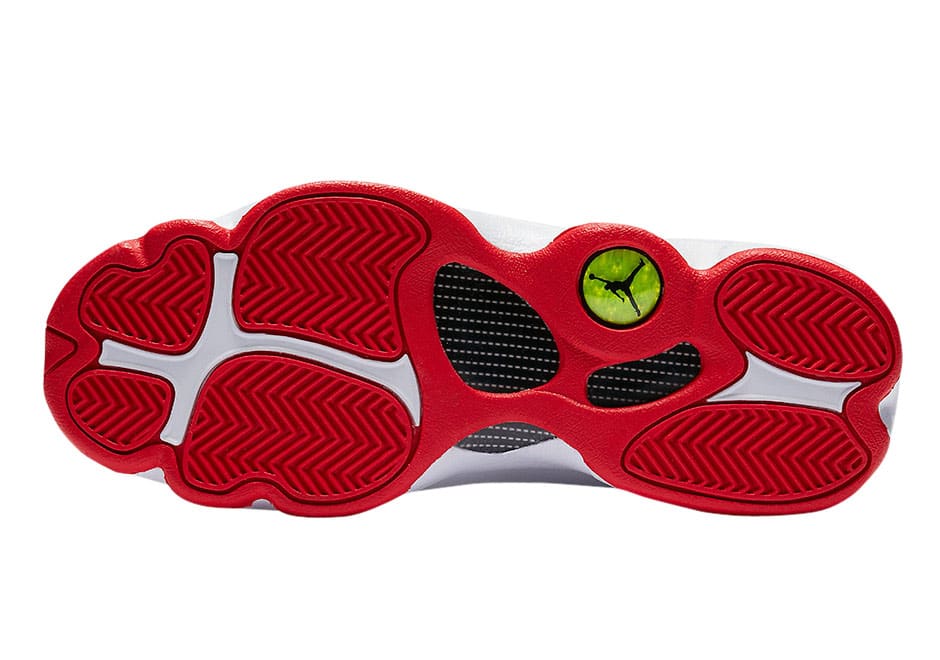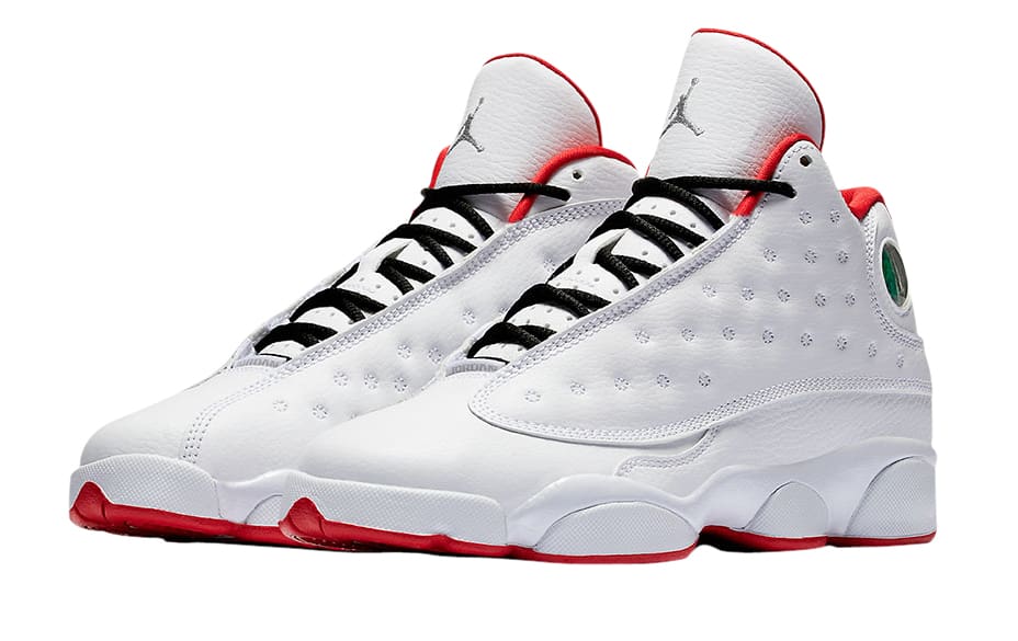 Initially unveiled back in 2009, the Air Jordan History of Flight collection was created to celebrate Jordan Brandu2019s 25th anniversary and instantly became one of the rarest sneakers of all-time. Dominated by a buttery and premium White leather upper, this Air Jordan 13 is then accented with University Red on the inner liner and outsole. Additional details include a Metallic Silver Jumpman on the tongue and black laces.