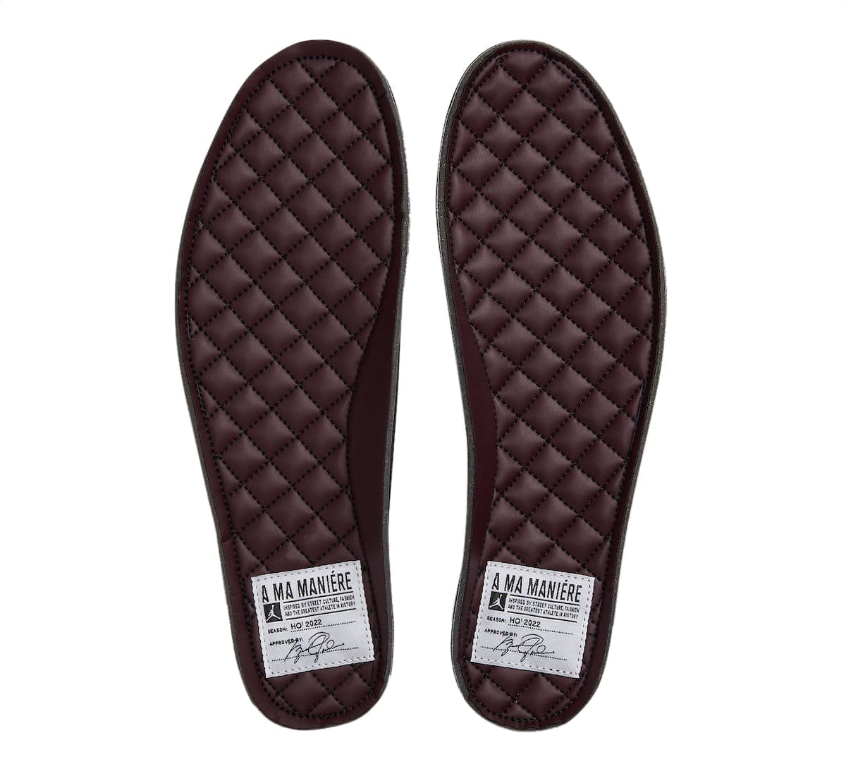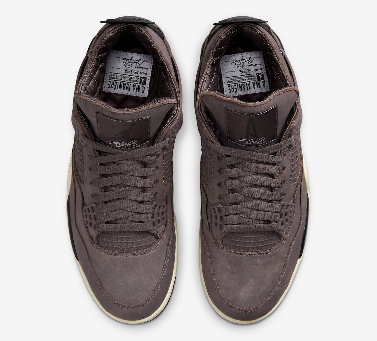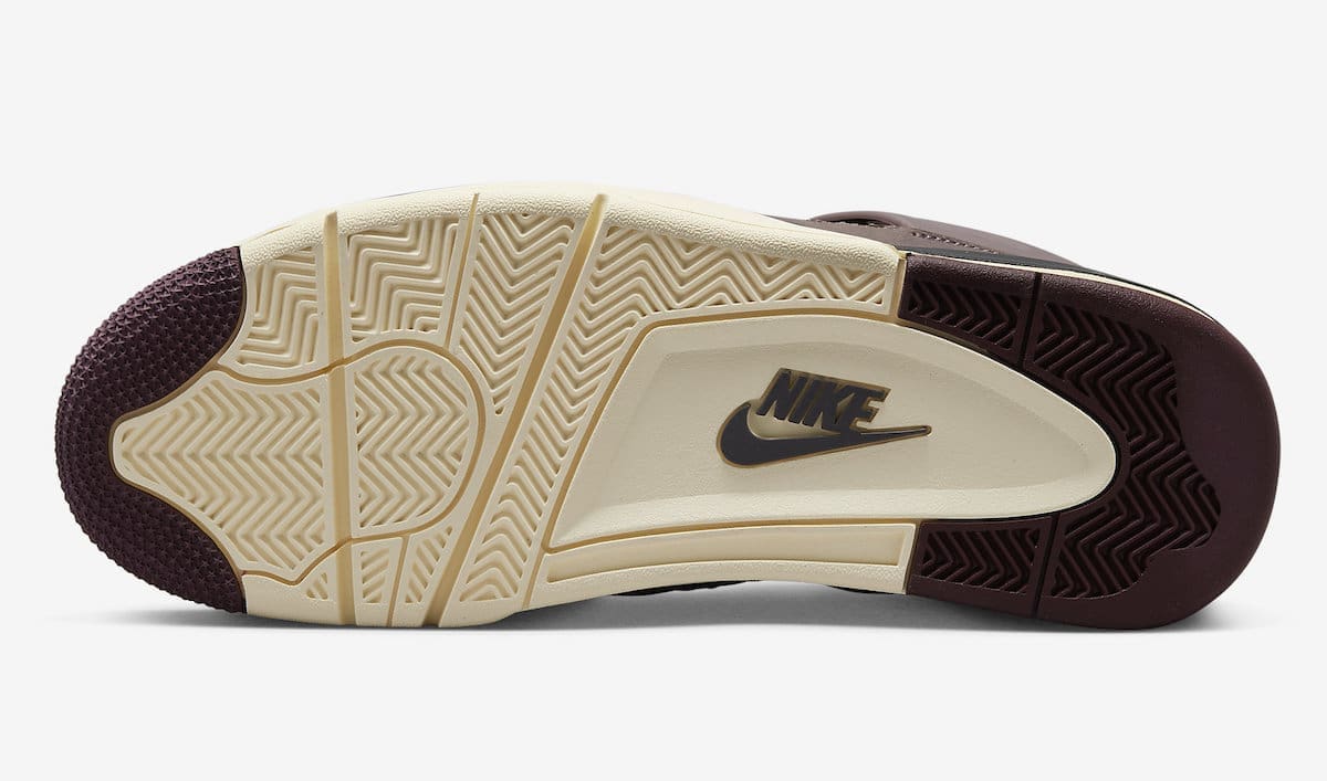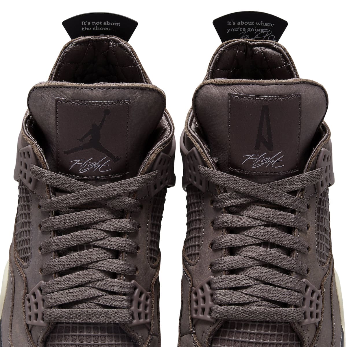 Dressed in a Violet Ore, Medium Ash, Black, Muslin, and Burgundy Crush color scheme. The A Ma Maniu00e9re xu00a0Air Jordan 4u00a0features a muted Purple base atop a Cream rubber sole. Other details includes u201cNike Airu201d heel tabs, polished branded emblem on the lateral collar, quilted sockliner and insoles. u201cItu2019s about where youu2019re goingu201d and u201cItu2019s not about the shoesu201d text is hidden behind the back pull tabs, co-branded tongues, hangtags, and special packaging completes the design.