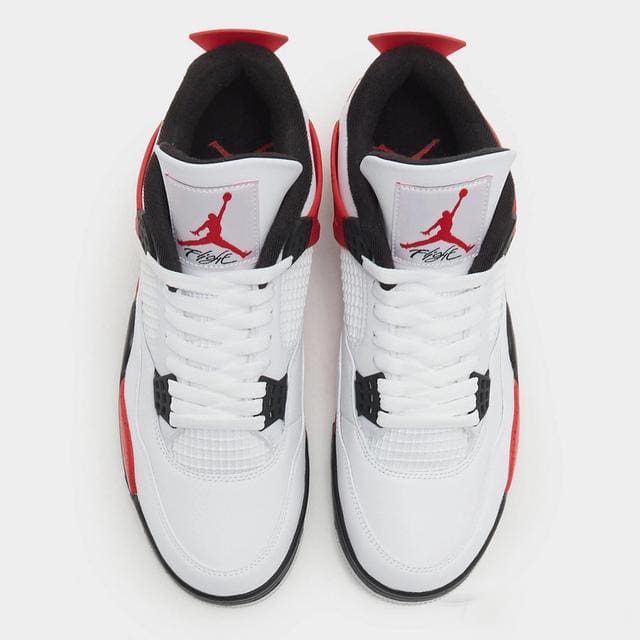 Dressed in a White, Fire Red, Black, and Neutral Grey color scheme. This offering of theu00a0Air Jordan 4u00a0comes with a similar design as theu00a0u201cWhite Cementu201du00a0release, but with Red replacing the Grey areas. It features a White leather upper with Red Cement detailing on the wing flaps, midsole, and heels. Black eyelets, inner lining, portion of the rubber sole with Neutral Grey completes the design.
