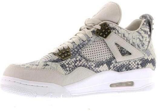 Jordan Brand will continue to premium Air Jordan 4 releases with the Snakeskin colorway. This shoe features a snakeskin material that is used on the upper as well as premium tumbled leather on the tongue, toe, side panels, wings and inner liner. A clean white midsole/outsole holds things down while bronze metal detailing appears on the eyelets and heel tab. The colors on the shoe include Light Bone, White, Pure Platinum and Wolf Grey.