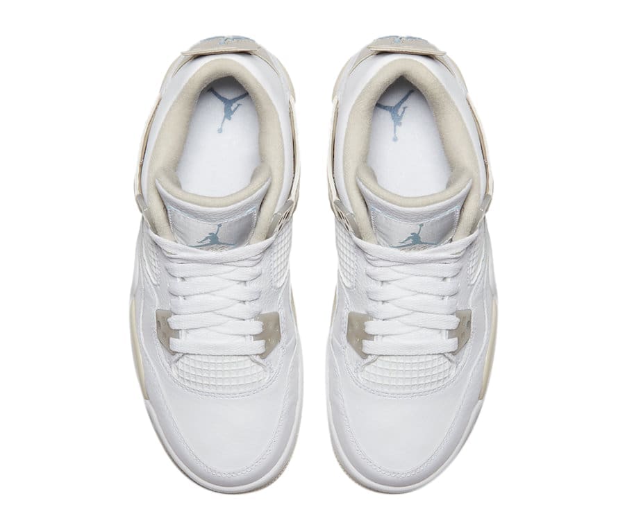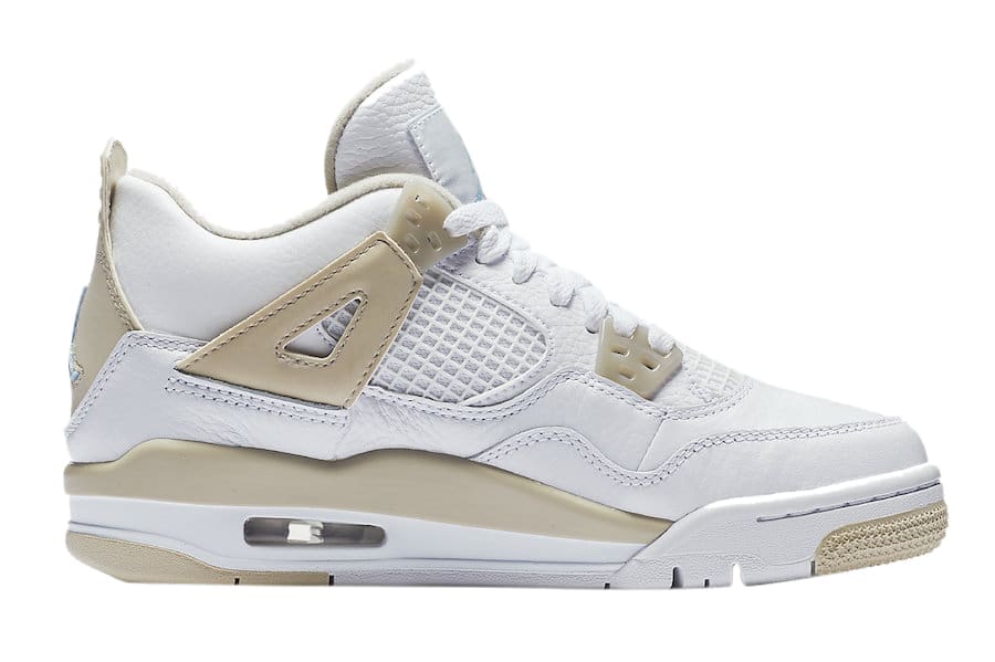The last time we saw the Air Jordan 4 GS Linen was in 2006 and itu2019s returning for the Summer of 2017 as a womenu2019s exclusive pair again. Just like its OG version, the sneaker is made of white tumbled leather for its upper, while the linen hue is placed throughout for a solid two-tone finish. In addition, pops of dull blue are seen on the Jumpman branded tongue, insoles and heel.