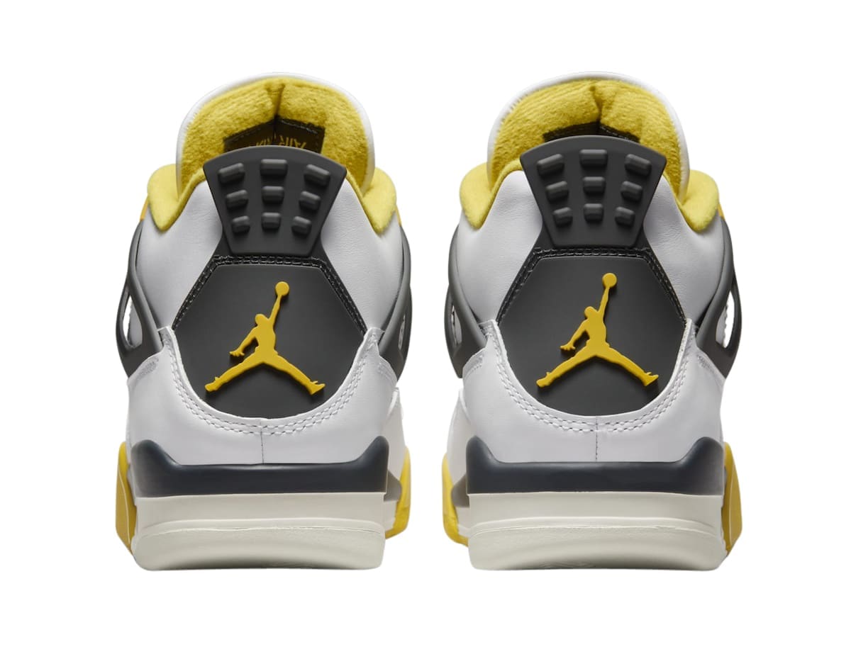 The shoes boast a refreshing combination of White, Coconut Milk, Vivid Sulfur, and Anthracite shades.In the OG-style color blocking, a White leather upper pairs with Black accents on wings, heel tabs, and midsole. Vibrant Vivid Sulfur Yellow details adorn the inner lining, lace eyelets, tongue Jumpman, and rubber outsole. For a lighter touch, Coconut Milk hues grace the fore-foot and heel sole sections, perfect for sun-soaked summers.