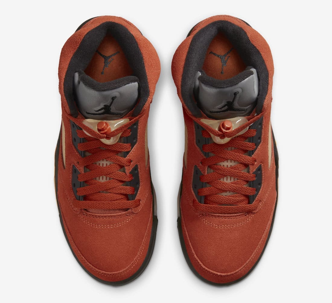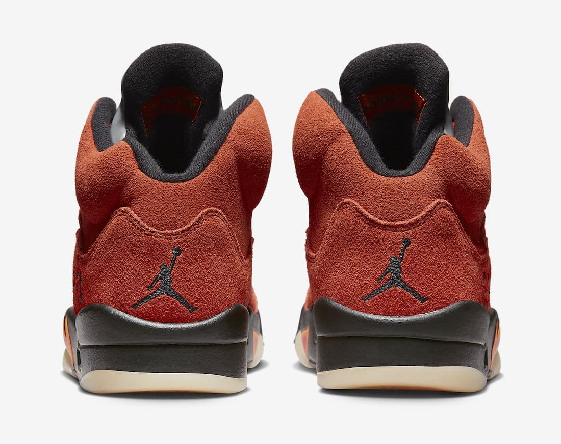 Dressed in a Martian Sunrise, Black, Fire Red, Muslin, and Bright Mandarin color scheme. This offering of theu00a0Air Jordan 5u00a0features a Red suede upper with 3M reflective tongues and #23 stitched on the lateral. A Black midsole with pops of Orange atop an aged-look translucent outsole completes the design.