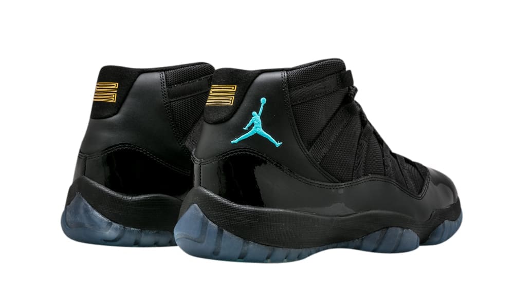 This pair of Air Jordan 11 is releasing for the very first time. Dressed in black nylon mesh and patent leather, the sneaker features a touch of gamma blue on the Jumpman logo, while varsity maize is seen on the tongue branding. pics via gc911