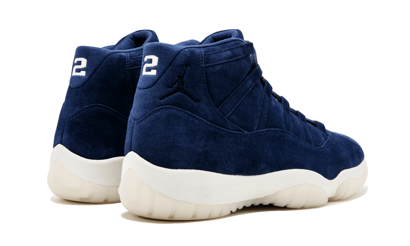 Jordan Brand diseu00f1u00f3 una Air Jordan 11 especial con ocasiu00f3n de la ceremonia conmemorativa en honor a Derek Jeter, en el Yankee Stadium.u00a0Enarbolando los colores de los Yankees de Nueva York, la Air Jordan 11 lleva un empeine de ante premium azul marino, contrastado con una media suela blanca y una outsole translu00facida milky, reanudando asu00ed la misma concepciu00f3n que las Air Jordan 11 Grey Suede. Finalmente, nos encontramos con el nu00famero 2 de Jeter bordado sobre las taloneras.