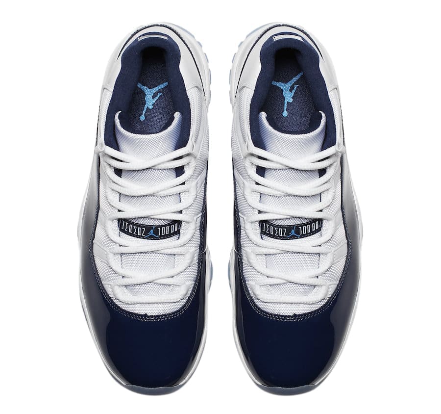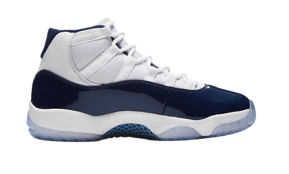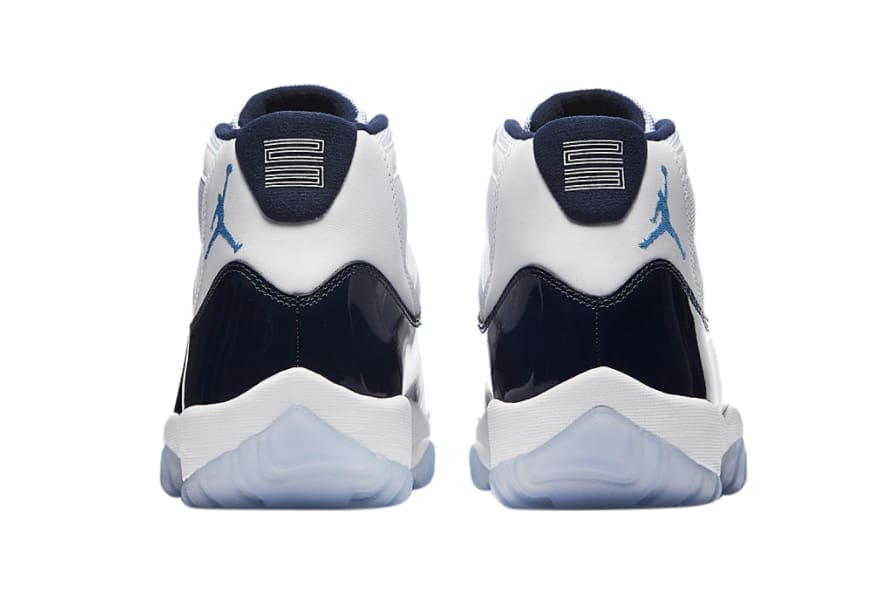 As a tribute to his alma mater, MJ famously wore his collegiate practice shorts under his professional uniform. The Air Jordan 11 Win Like u201882 celebrates this ritual by featuring a University Blue Jumpman and Midnight Navy patent leather that ties back to his alternate practice short colorway. The rest of the shoe is done in a white nylon mesh while a white midsole and icy blue translucent outsole wrap things up.