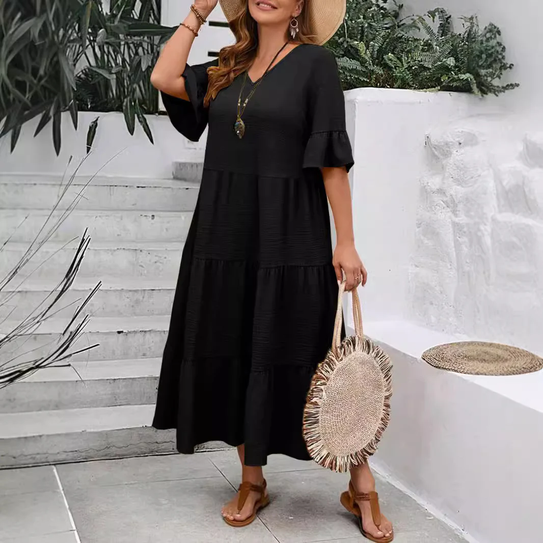 • New Model V-Neck Splicing Multi-Color Multi-Code Long Large-Size Dress