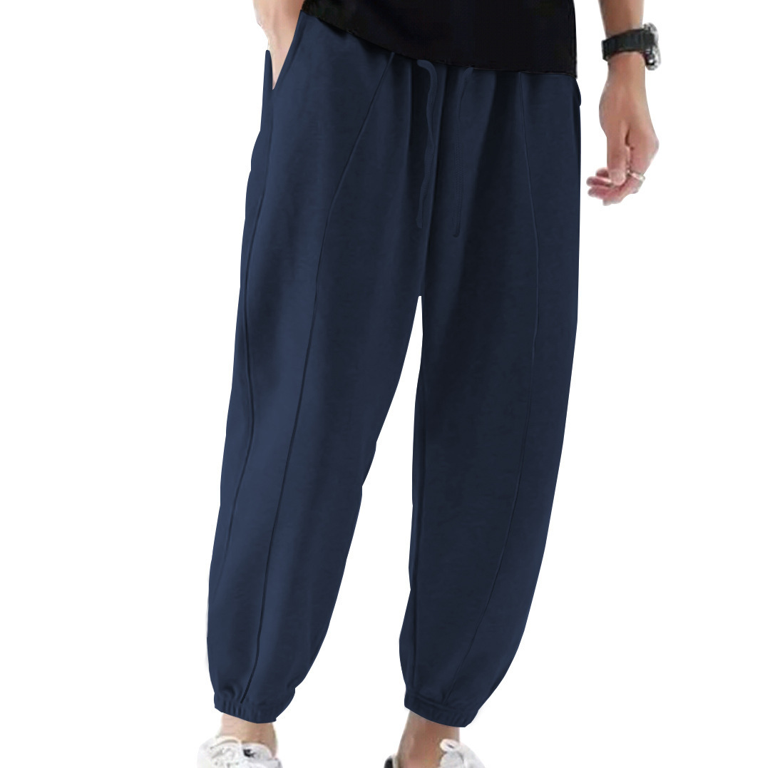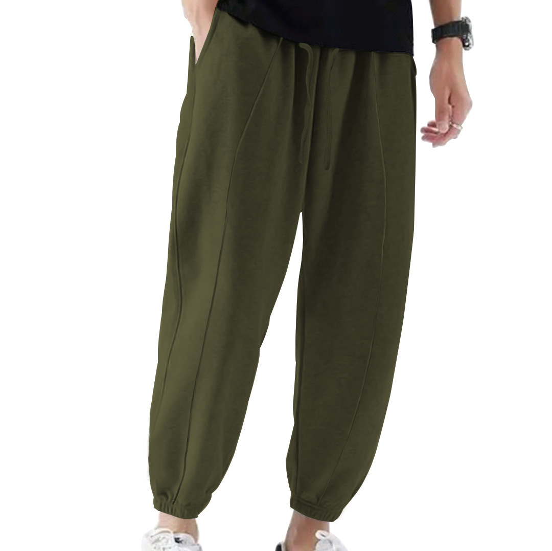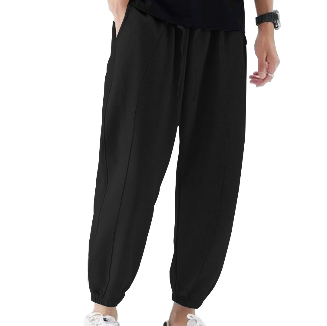 • Solid color plus-size men's casual pants, loose lace-up pants