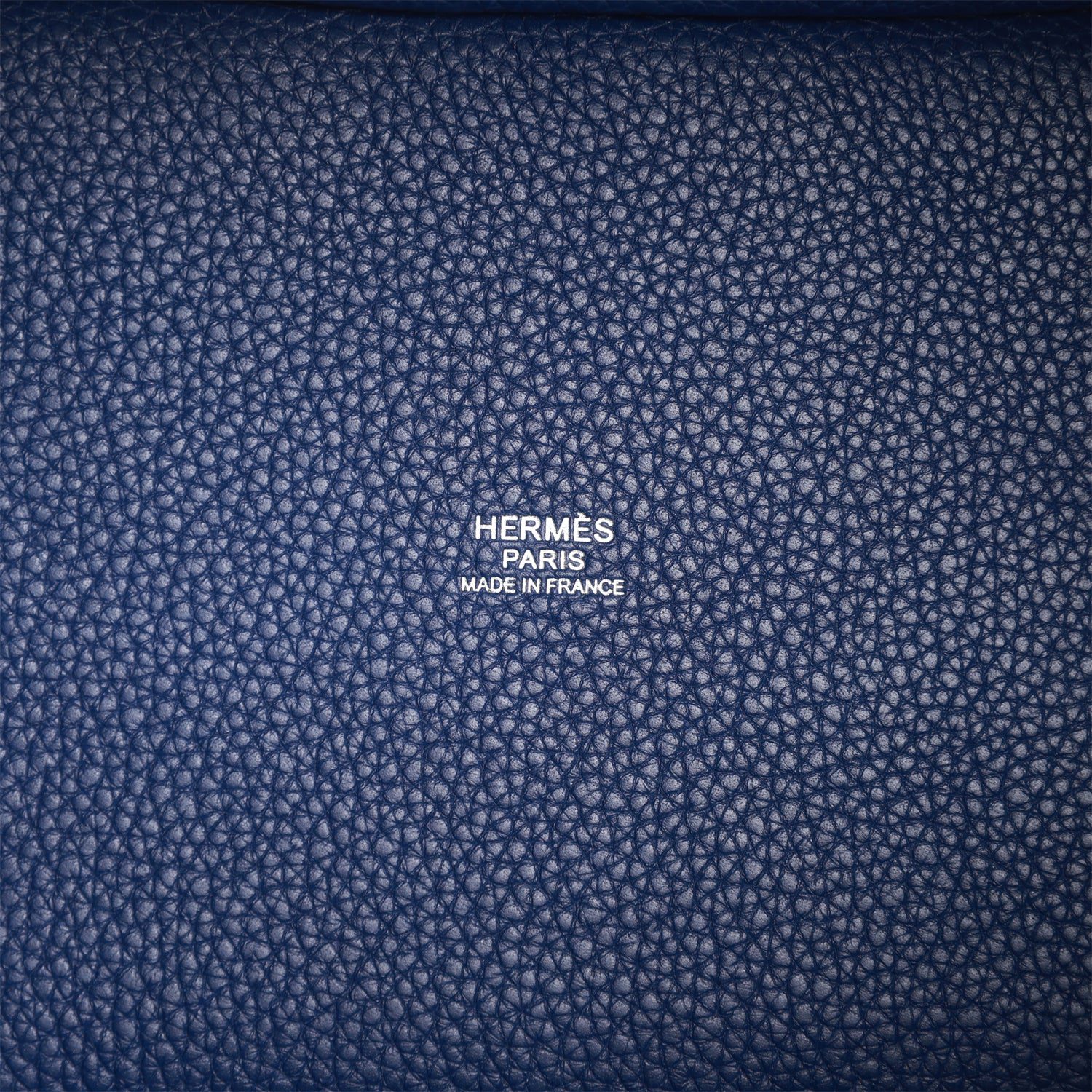 This Picotin Lock is in Bleu Saphir maurice leather with palladium hardware and has tonal stitching with two top handles.