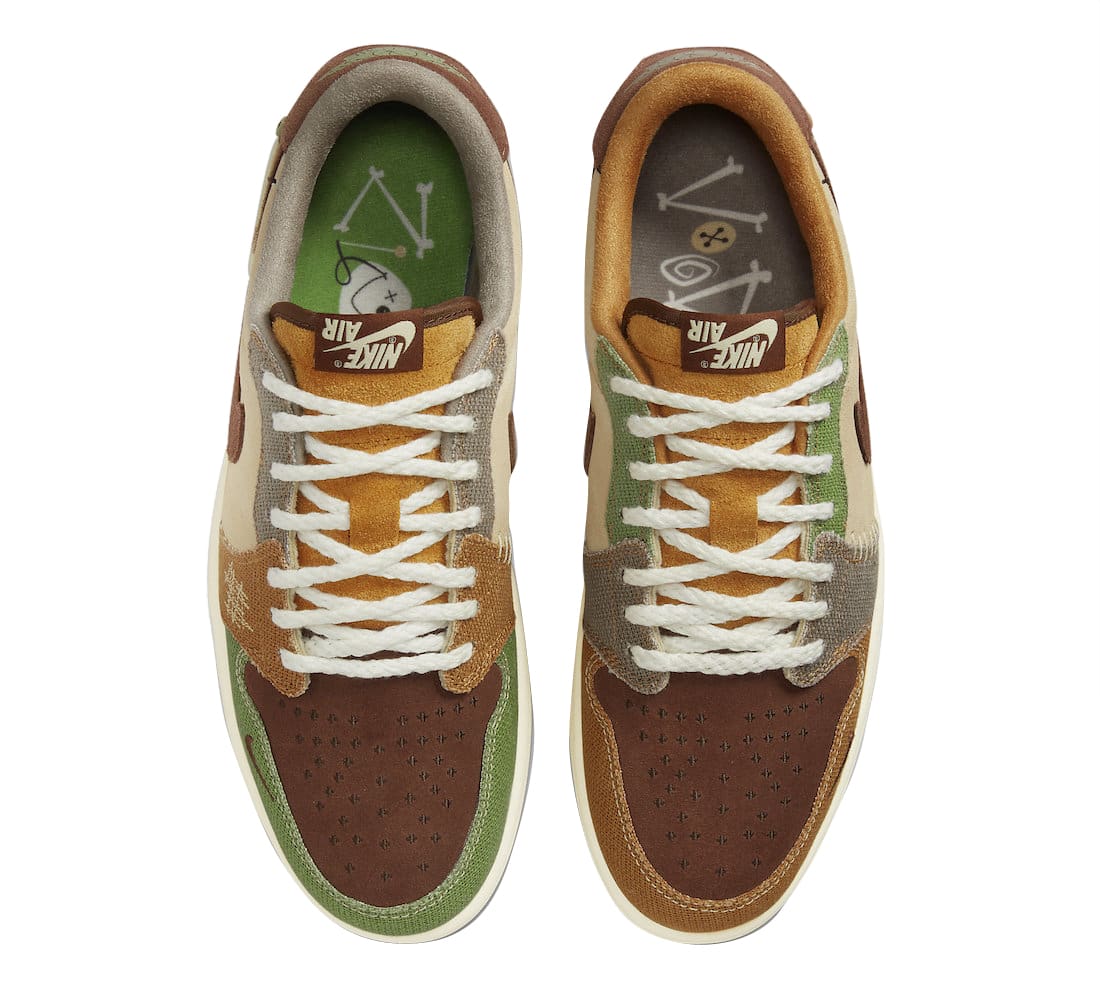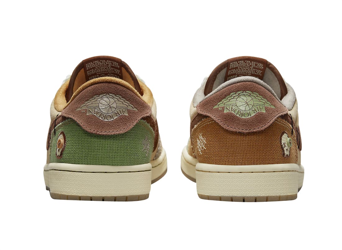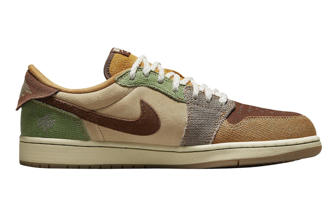Dressed in a Flax, Muslin, Fauna Brown, Oil Green, Sesame, and Moon Fossil color scheme. This offering of theu00a0Air Jordan 1 Lowu00a0comes constructed in a mix of hemp, canvas, and suede materials featuring the Voodoo skull logo on the lateral heel. Other details includes exposed stitching and an upside down tongue label.