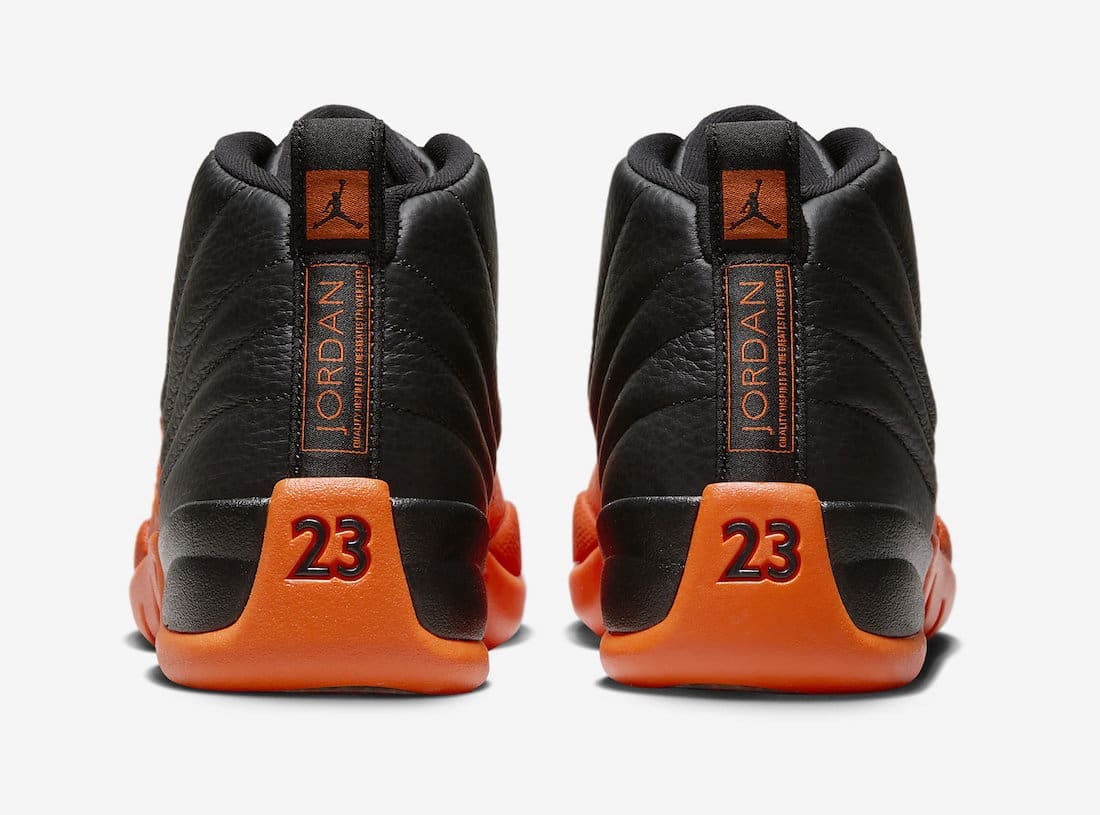 Inspired by the colors of the WNBA, this womenu2019s exclusive colorway of the Air Jordan 12 features a Black tumbled leather upper and tongues with with matching metal upper eyelets, laces, inner lining, and rear pull tabs. The Brilliant Orange accents land on the mudguards, tongue and heel branding and rubber outsole. Finishing features include the Black traction underfoot and the White lettering on the heel pull tabs completes the design.