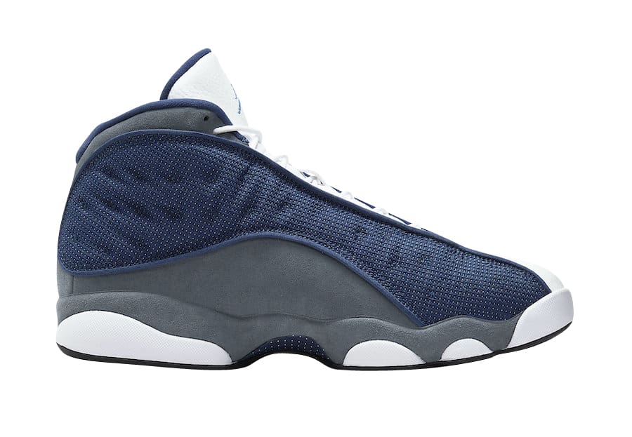 Releaaing for the first time since 2013, the Air Jordan 13 Flint returns in true OG form as it mimics the look of the OG pair from 1998. Highlights include reflective mesh side panels in Navy, Flint Grey suede on the mudguard and heel, and white pebbled leather on the toe and tongue. University Blue Jumpman logos on the tongue and the signature hologram on the heel wrap up the look.