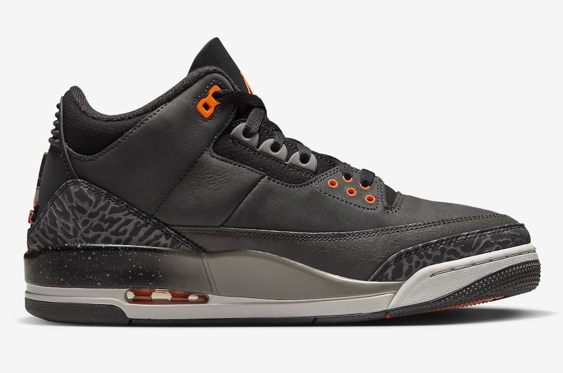 The Air Jordan 3 Fear comes dressed in a Night Stadium, Total Orange, and Black color scheme. It is given a premium Dark Grey suede upper placed on top of a speckled Black and White midsole in the rear atop a Black rubber outsole. The Dark suede upper is decorated with while elephant print overlays take care of the toe and heels. It also comes with insoles nodding to the u201cLook Me In My Eyesu201d commercial reading, u201cIu2019m scared of what I wonu2019t become, and youu2019re scared of what I could become.u201d