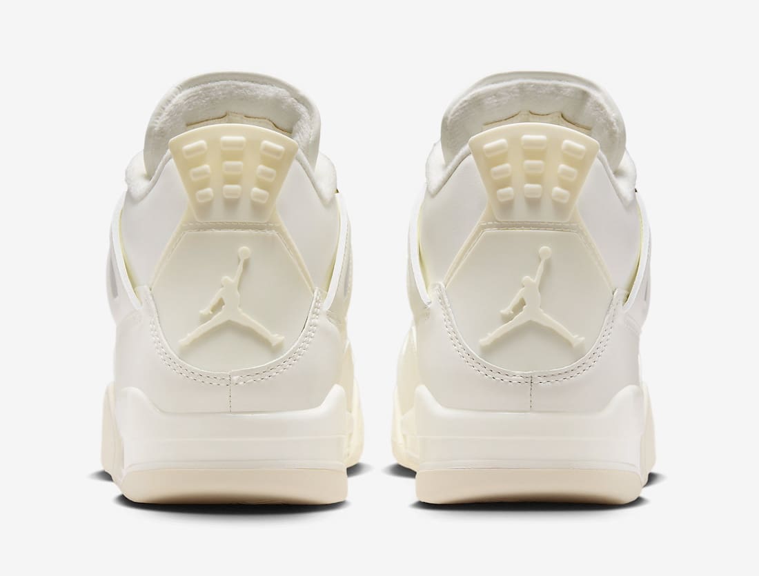 In a Sail, Metallic Gold, and Black palette, this Air Jordan 4 boasts a Sail leather upper and matching details on the tongues, laces, netting, inner lining, and rubber sole. Elevating the aesthetic are eye-catching Metallic Gold touches on the eyelets, tongue labels, Jumpman heel tabs, and Air units.