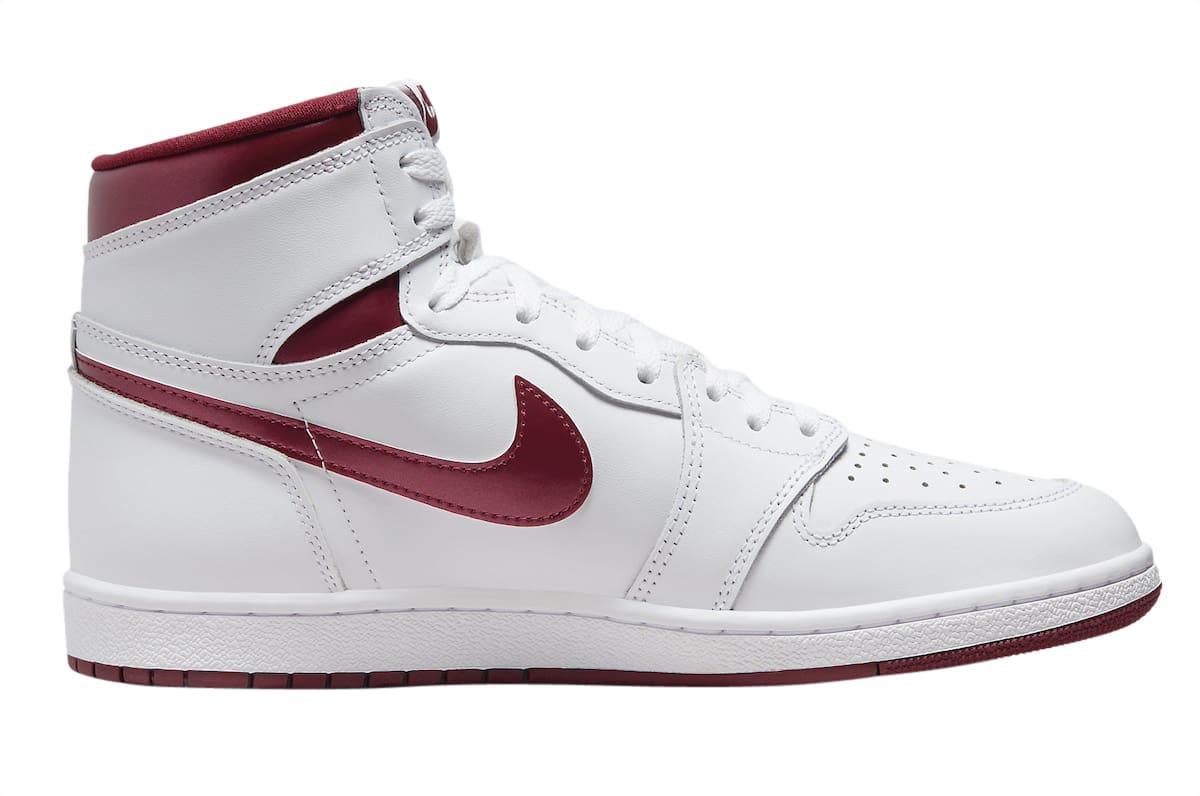 One can argue that the Air Jordan 1 High Metallic Pack are the often forgotten/overlooked OG colorways from the original lineup. One colorway from said pack is the Air Jordan 1 High 85 Metallic Burgundy. In 2024, the Air Jordan 1 High 85 Metallic Burgundy is set to make its long awaited return since it first dropped back in 1986. Dressed in a White and Team Red color scheme, the Air Jordan 1 High 85 Metallic Burgundy comes in true OG form. This includes the shape and build of the sneaker. Details include a White leather base contrasted by the Metallic Burgundy (Team Red) accents on the Swoosh logos, collar, and Wings. Elsewhere you will find Burgundy u201cNike Airu201d branding on the tongues atop a White midsole and Burgundy rubber outsole.