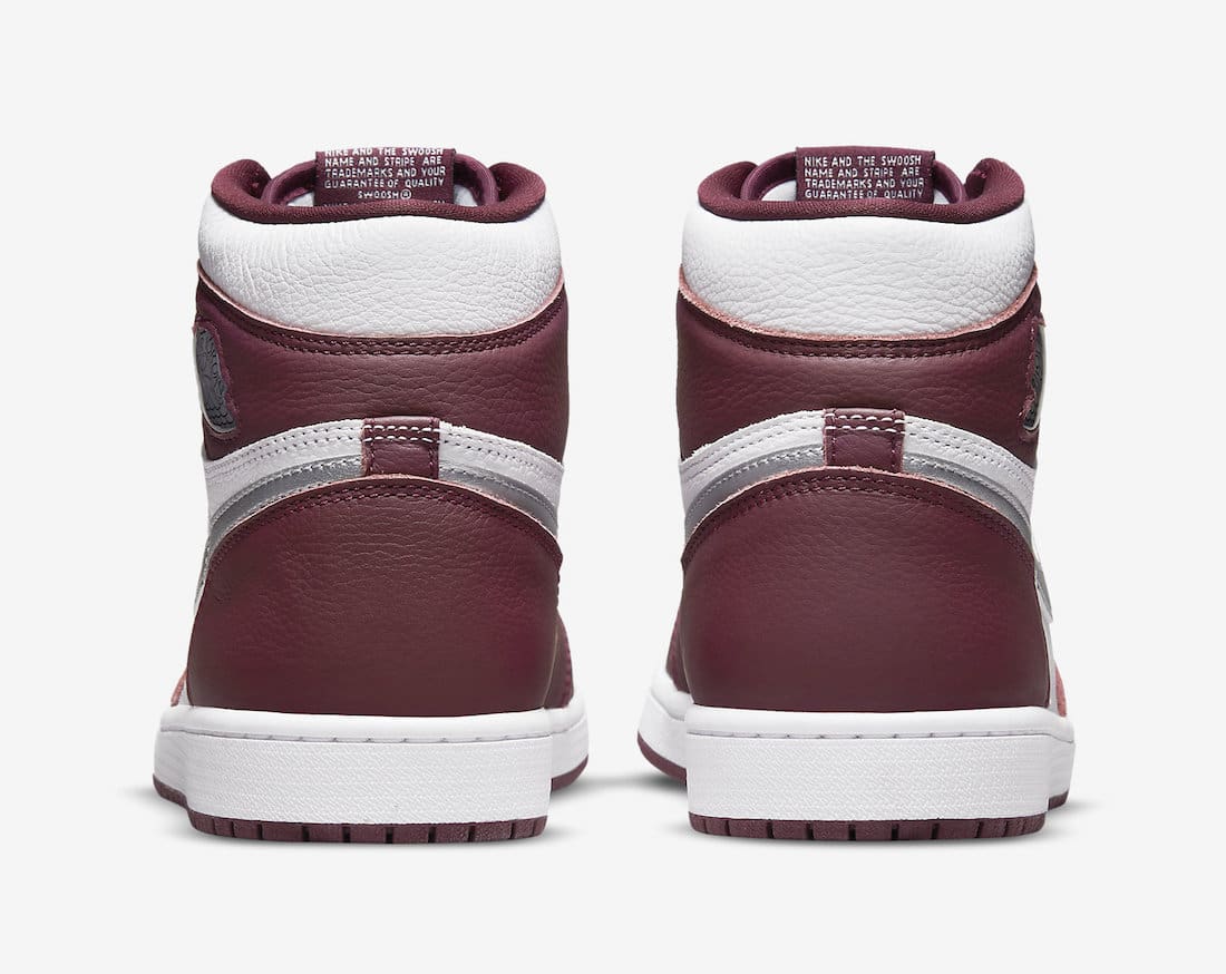 Dressed in a Bordeaux, White, and Metallic Silver color scheme. Thisu00a0Air Jordan 1u00a0features a White leather upper with Bordeaux overlays and Silver Swoosh and Wings logos, similar to theu00a0u201cMidnight Navyu201d Air Jordan 1 CO.JP. A White midsole atop a Bordeaux rubber outsole completes the design.
