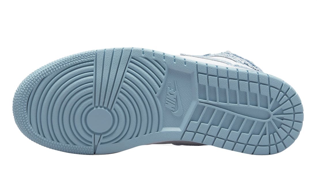 Dressed in a White, Worn Blue, and Metallic Gold color scheme. This offering of theu00a0Air Jordan 1u00a0features a White leather base with frayed Denim Blue overlays. Pastel Blue tongue tags, rubber outsole, and second set of laces competes the design. The release also comes with special Gold Jumpman-branded lace dubraes.