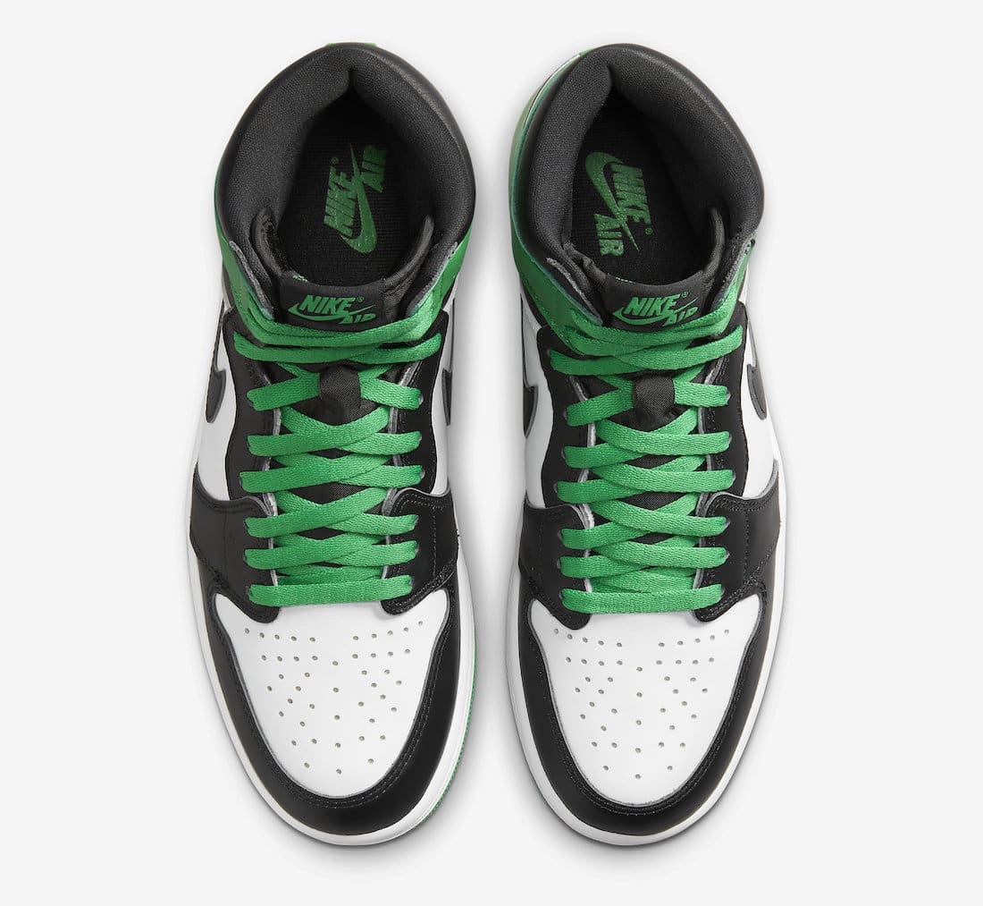 The Air Jordan 1 High OG u201cLucky Greenu201d is said to be a nod to the Celtics-inspired Air Jordan 1 from the 2009 DMP Pack. The sneaker features a full leather construction on the upper with White hitting the side panels, Black on the toe and overlays, and the defining Lucky Green seen on the ankles and heels. Finishing details include black Swooshes and Wings logos, white midsoles, and green rubber outsoles.