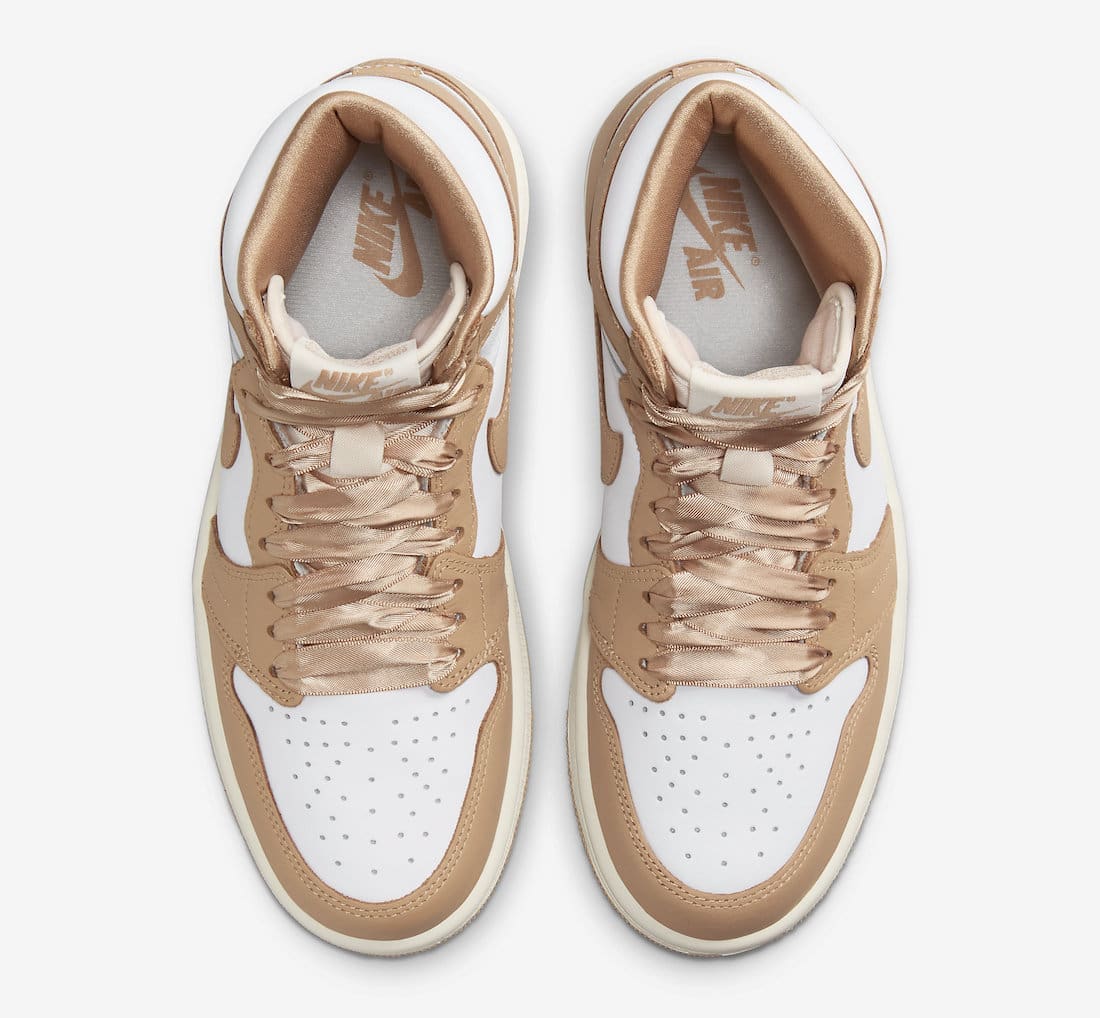 Dressed in a Praline, White, and Sail color scheme. This offering of the Air Jordan 1 comes constructed with premium leather, mesh tongues and satin liners to give off that luxurious vibe. It features a White base with Tan overlays detailed with satin-like flat laces. Tan u201cNike Airu201d tongue tags, White u201cWingsu201d ankle logo atop a Sail midsole and Tan rubber outsole completes the design.