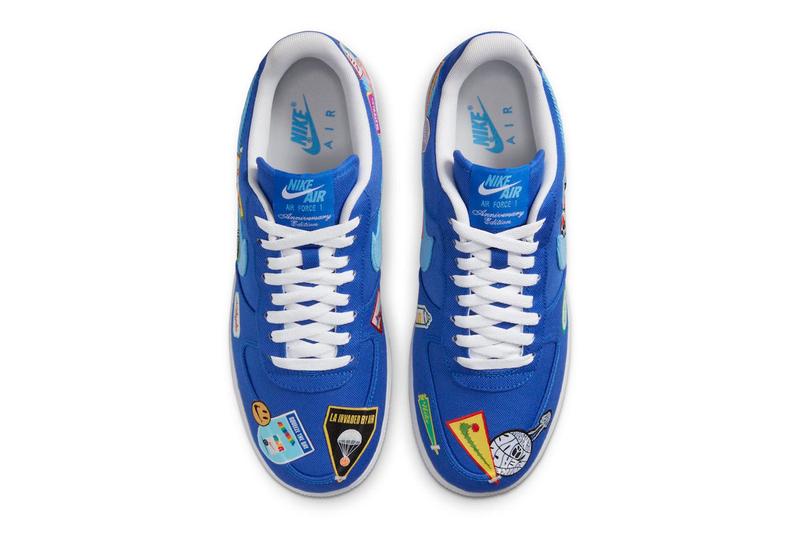 Landing in u201cRacer Blue/University Blue-White,u201d this take on the Air Force 1 Low finds itself covered in thematic patches. While u201cRacer Blueu201d lands on the canvas upper alongside u201cUniversity Blueu201d Swooshes, each shoe features Nike designs both old and new throughout. References to Los Angeles stand out as the focal point of the upper, including one which names the coastal neighborhood of San Pedro. An u201cAnniversary Editionu201d tongue combines with white at the trim, laces and sole unit to complete this celebratory look.