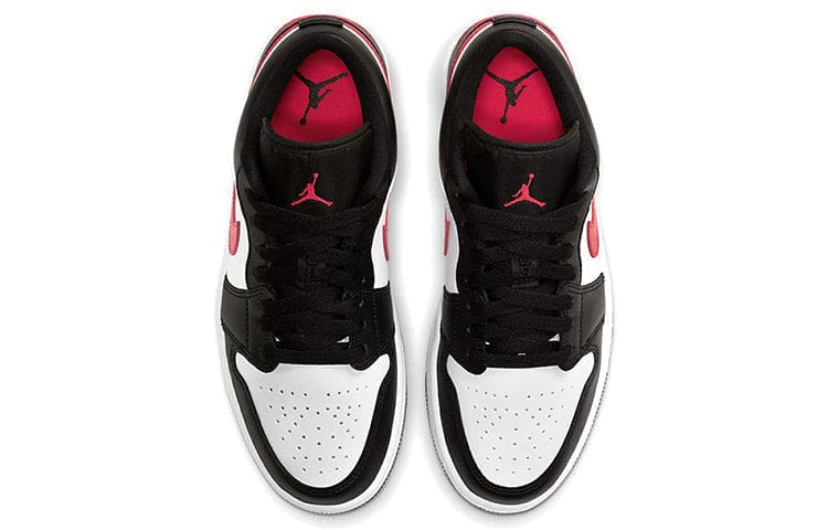 Jordan 1 Low u201cSiren Redu201d is dressed in a white leather base and Black overlays. Nike side swoosh and Jordan Brandu2019s signature wings logo on the heel are in vivid red, giving a premium look to the pair.
