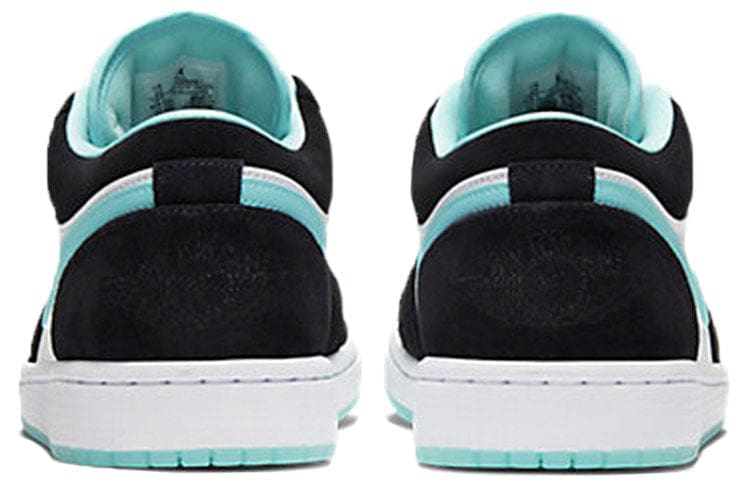 This Air Jordan 1 Island Green features a White leather upper with Black nubuck overlays. Island Green then covers the Swoosh, accents, liner, tongue, and rubber outsole. Finishing the look is a White midsole, while collar underlays swap Black for White.