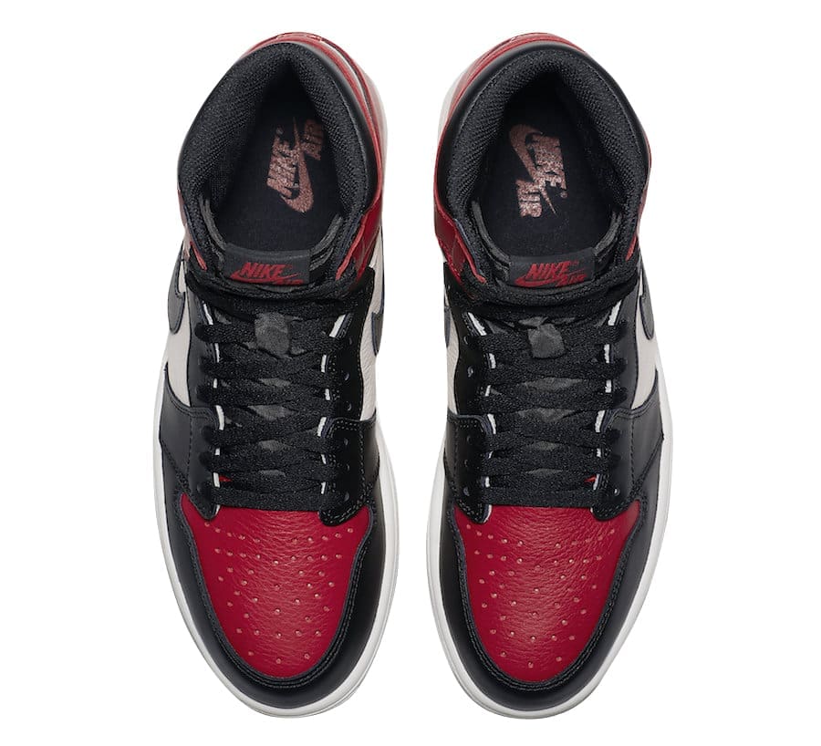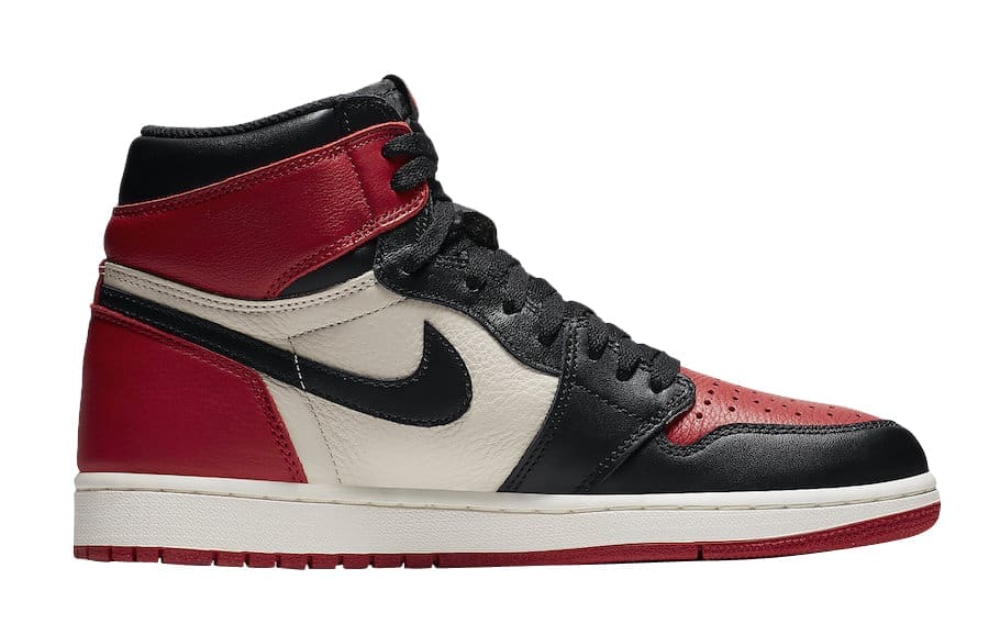 Essentially a variation of the Black Toe 1s with a red toe instead of white and a black tongue, or a Shattered Backboard 1 with red replacing the orange, early images of this shoe have shown us that the leather on used on this Jordan 1 looks to be top notch quality similar to the one used on the Shattered Backboards. Gym Red, Black, and Summit White come together on the premium leather upper along with a white midsole and a Gym Red outsole.
