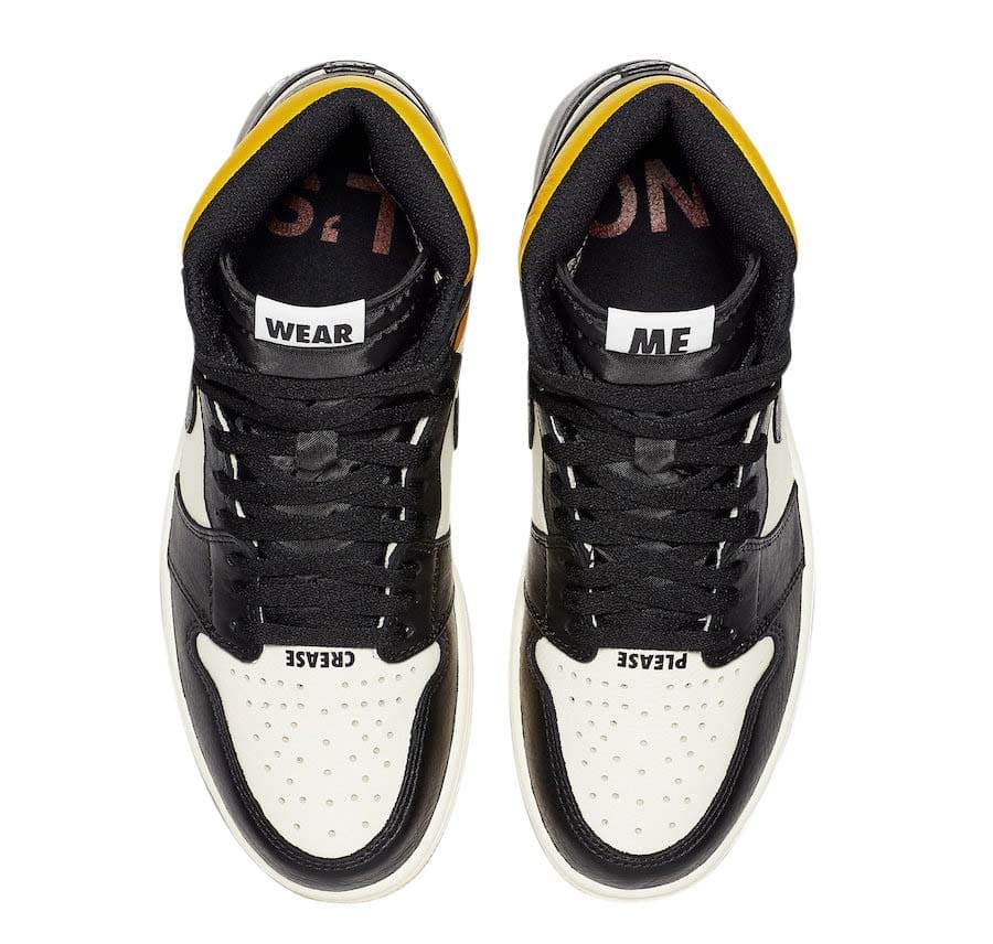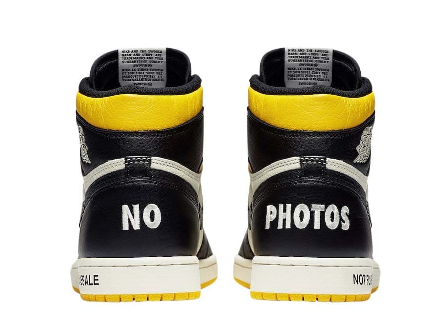 Nike confronts this practice and stands up to the business by presenting theu00a0 Air Jordan 1 [Not For Resale]u00a0 With a black, white and yellow colorway it features a large ��NOT FOR RESALE�� text on its midsole, in addition to embroidered ��NO PHOTOS�� on the heels, u201cWEAR MEu201d on the tongues, u201cPLEASE CREASEu201d on the toe caps, and u201cNO L��Su201d on the insoles. Lastly, the upper is constructed from soft, premium leather, while the silhouette itself sits in the shape of the iconic Jordan 1.