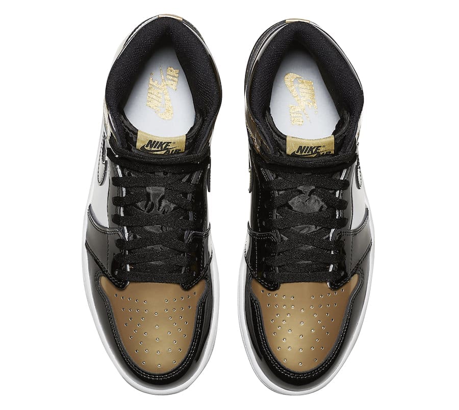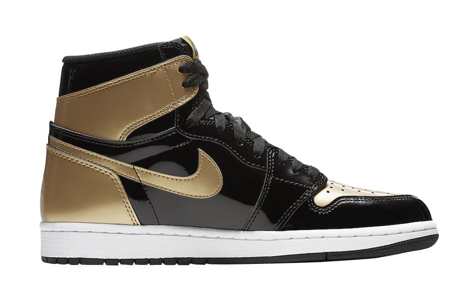 After the AJ1 u201cGold Top 3u201d dropped at ComplexCon in 2017, Nike decided to strike while the gold was hot with the Jordan 1 Retro High NRG Patent Gold Toe. Known as the ��Patent Gold Toe�� edition, these AJ 1��s come in the same black, metallic gold, and summit white colorway as the ��Gold Top 3��. They do, however, feature gold toe and tongue labels, as well as black tongues on both sneakers. The medial of each shoe is also in black/gold while the lateral is in white, black, and gold. Its release date was February 16, 2018, with a usual cost of $160 in men��s sizes and $120 in elementary school sizes. Another must-have for fans of the Air Jordan 1, you can wear your ��golden touch��u00a0