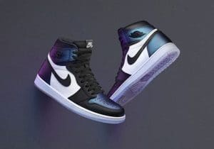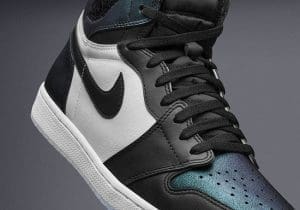 This model is made with black and white leather, Black Toe type, and iridescent leather with green reflections on the heel and toe box, materials that we had already been able to see in the Air Jordan 6 Chameleon. To give the final touch to the silhouette we have the Nike Air logo on the tongue, the Wings logo on the sides, and a translucent sole. On the occasion of the NBA All-Star Weekend in New Orleans, Jordan Brand has designed this unprecedented Air Jordan 1 All-Star Chameleon.