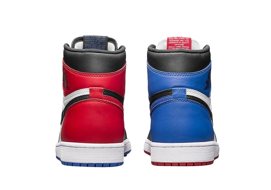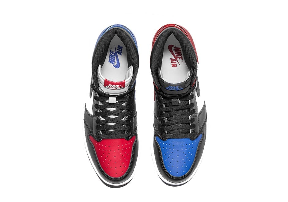 Originally believed to be some kind of Air Jordan 1 High u201cWhat The Releaseu201d, this upcoming release is actually named the Air Jordan 1 Retro High OG Top 3. The shoe gets dubbed the u201cTop 3u201d colorway because it is defined by utilizing three of the original Air Jordan 1 colorways we all know and love. Those colorways include, Chicago, Banned/Bred and the Royal colorway. Each colorway/theme is blended across the silhouetteu2019s premium leather profile. In addition, the number 3 also signifies the draft spot that Michael Jordan was select in the 1984 NBA Draft. The left shoe is completely different from the right shoe, while one shoe has a Red outsole and the other has a Royal outsole. Nike Air branding on the tongue and Wings branding on the collar round out the main features of the shoe.