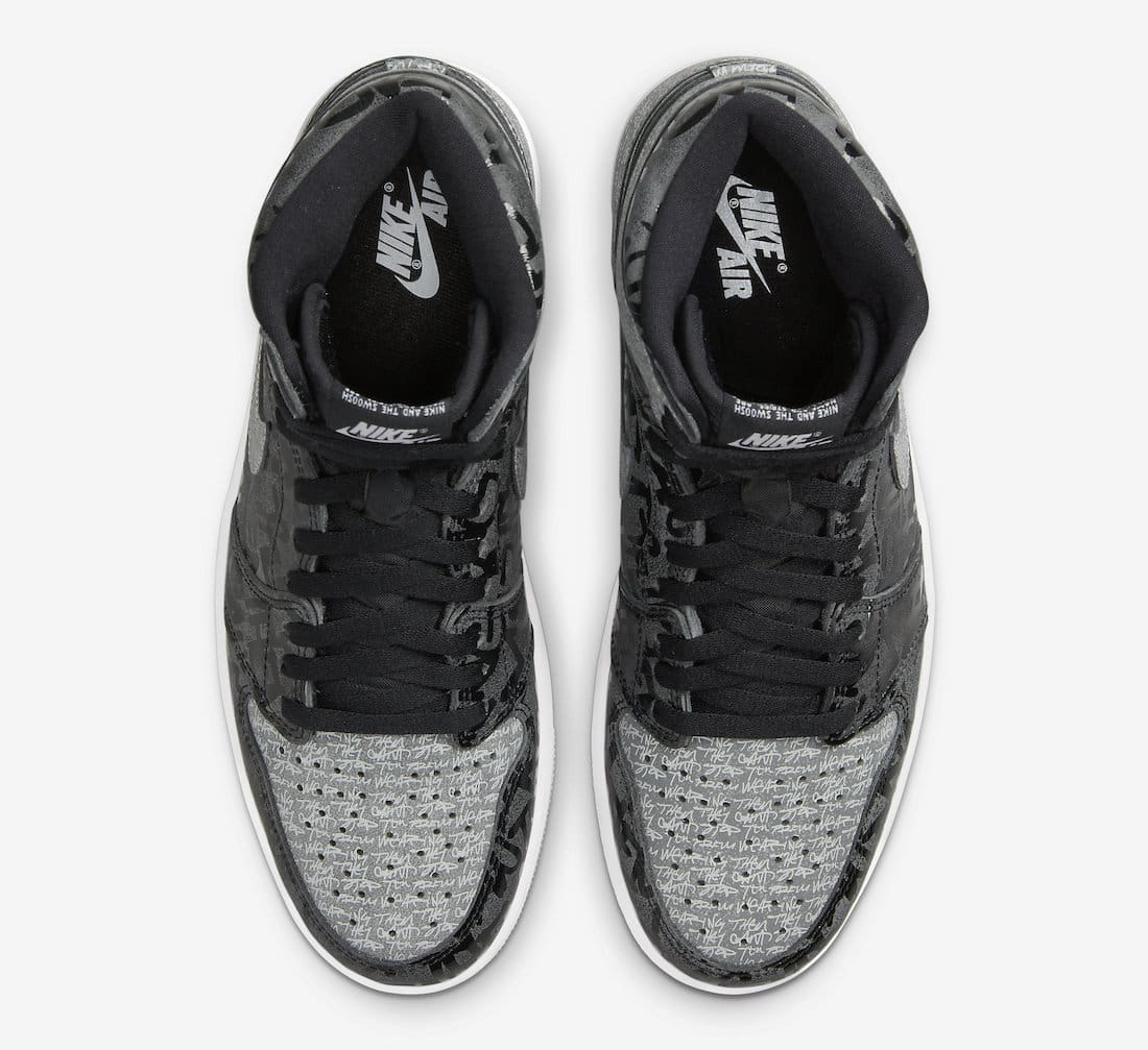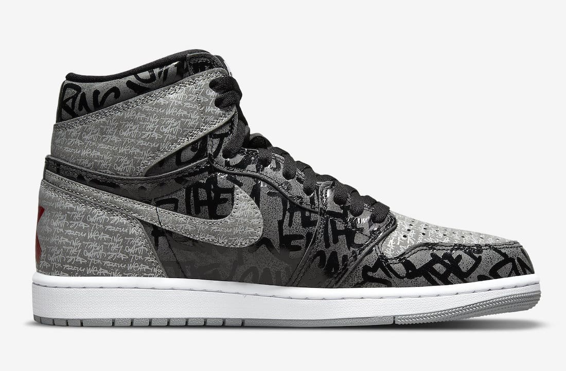 Dressed in a mix of Black, White, and Particle Grey resembling the classicu00a0u201cShadowu201du00a0colorway. Thisu00a0Air Jordan 1u00a0is detailed with an upper covered in text that reads u201cThey canu2019t stop you from wearing them,u201d referencing the commercial, and the iconic Red