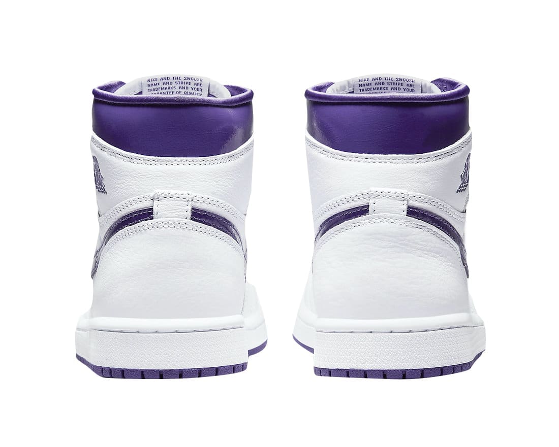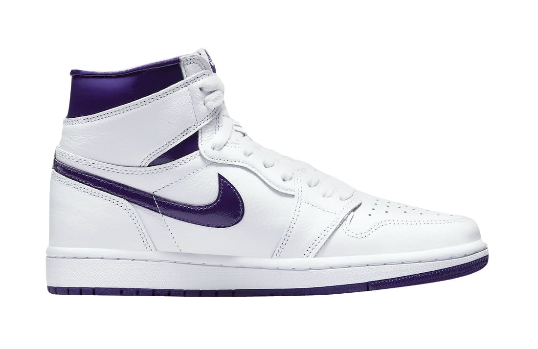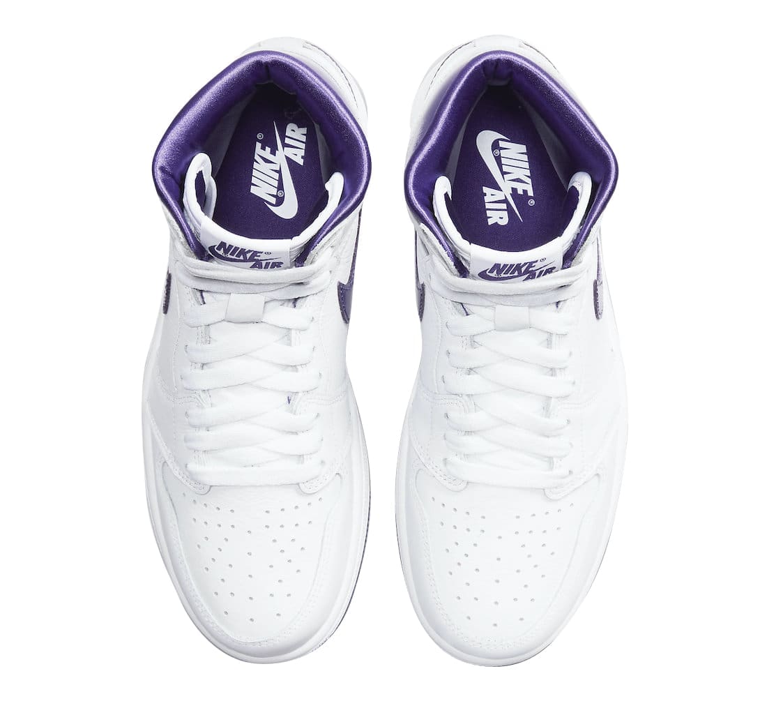 The Air Jordan 1 OG was released in a variety of colorways, including a series of ��Metallic�� designs that broke with the conventions of this model by including reflective and shiny accents. Inspired by one of those underrated releases, thisu00a0new womenu2019s-exclusive colorway of the Air Jordan 1 High OG boasts White leather uppers with the defining Court Purple accents found on the Swooshes, collar area, tongue branding, Wings branding and rubber outsole. It look very similar to the OG u201cMetallic Purpleu201d Air Jordan 1. Finishing details include the Nike Air branding on the tongue, White midsoles, and two sets of laces.