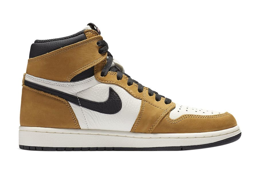 Recalling Michael Jordanu2019s wardrobe during his Rookie of the Year acceptance speech, this Air Jordan 1 features a color combination of off-white, Gold Harvest, and Black all throughout the upper which is constructed out of leather and suede. The best parts of the shoe are the insides of the wing flaps, one which reads u201cu201cThis award is nice, but I just feel it is very important for each individual to go out and contribute to his team.u201d-MJ. And the other has u201c1984-85, R.O.Y., 2313 points, and 28.2 ppg. A white tongue, red Nike Air branding, black laces, white midsole, and black rubber outsole complete the look.