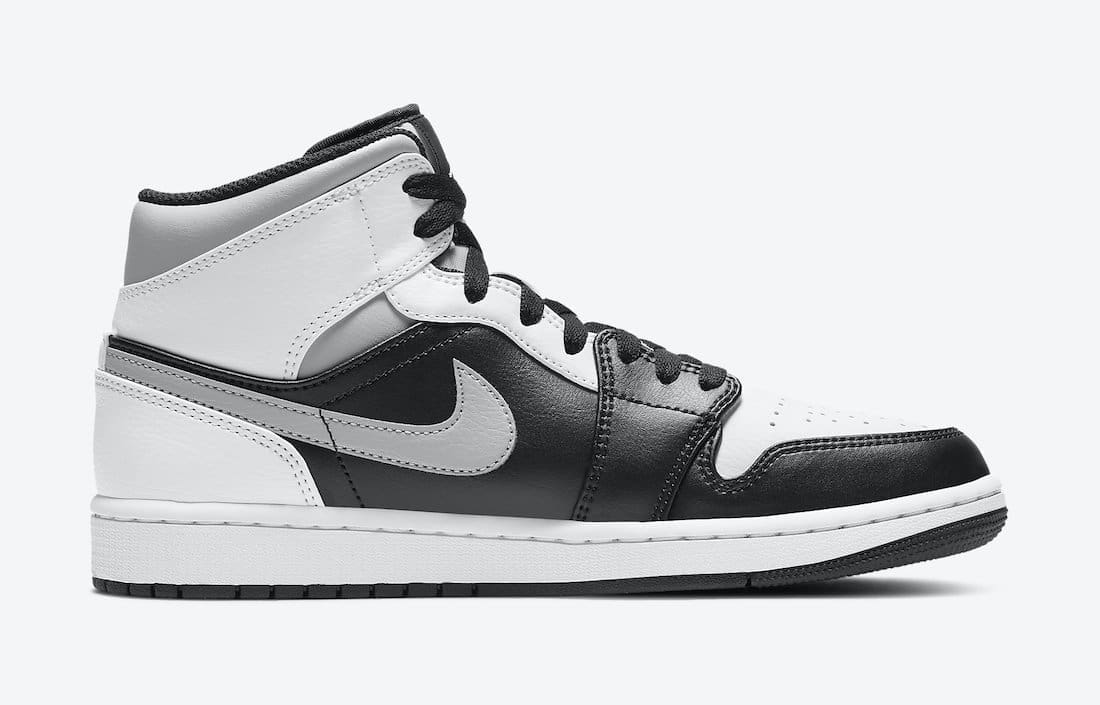 This u201cWhite Shadowu201d edition of the mid-topu00a0Air Jordan 1u00a0features White leather covering the toe and rear overlays with Black on the side panels, forefoot and toe overlay. Finishing details includes Grey Swooshes and ankle collar along with Black laces, liner, tongue tags, Wings logo atop a White midsole and Black rubber outsole.