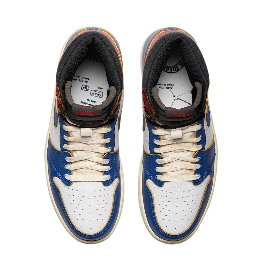 Catch everyoneu2019s eye while rocking the Jordan 1 Retro High Union Los Angeles Blue Toe. This Jordan 1 is sporting a white leather upper with blue accents, blue Nike u201cSwooshu201d, cream midsole, and a blue sole. These sneakers were released in November 2018.