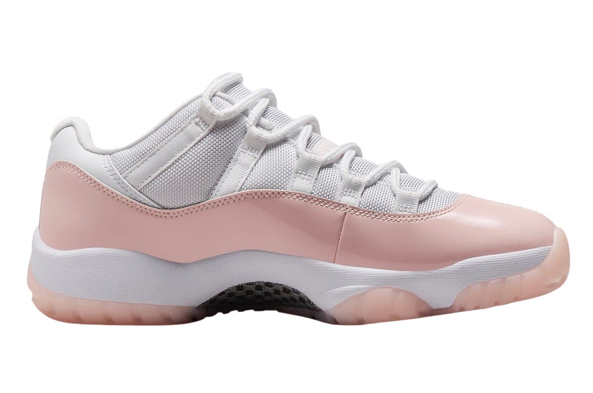 This new womenu2019s exclusive colorway of the Air Jordan 11 will come dressed in a clean White and Legend Pink two-tone color scheme. Design details include White hits on the mesh upper, leather heel overlay, midsole, and mesh tongue. The Legend Pink accents land on the patent leather mudguard that goes all around the shoe as well as the branding hits on the tongue and heel. A Pink translucent outsole and White laces complete the look.