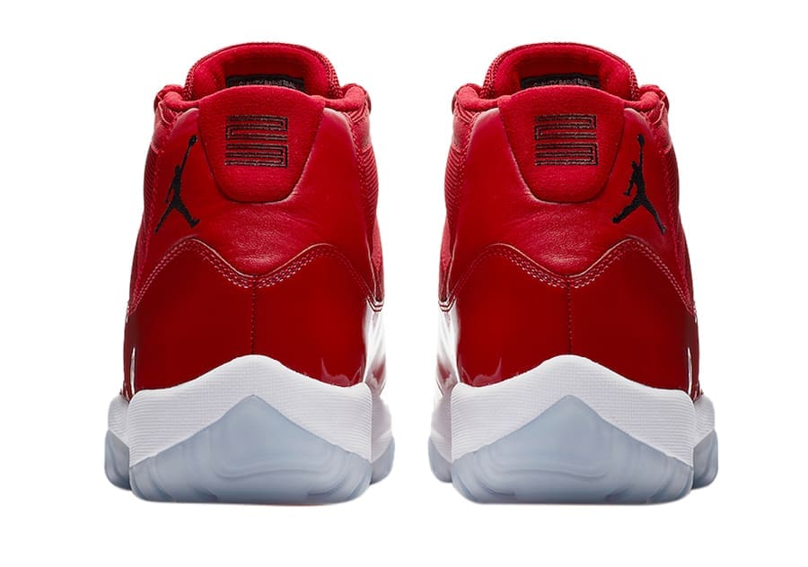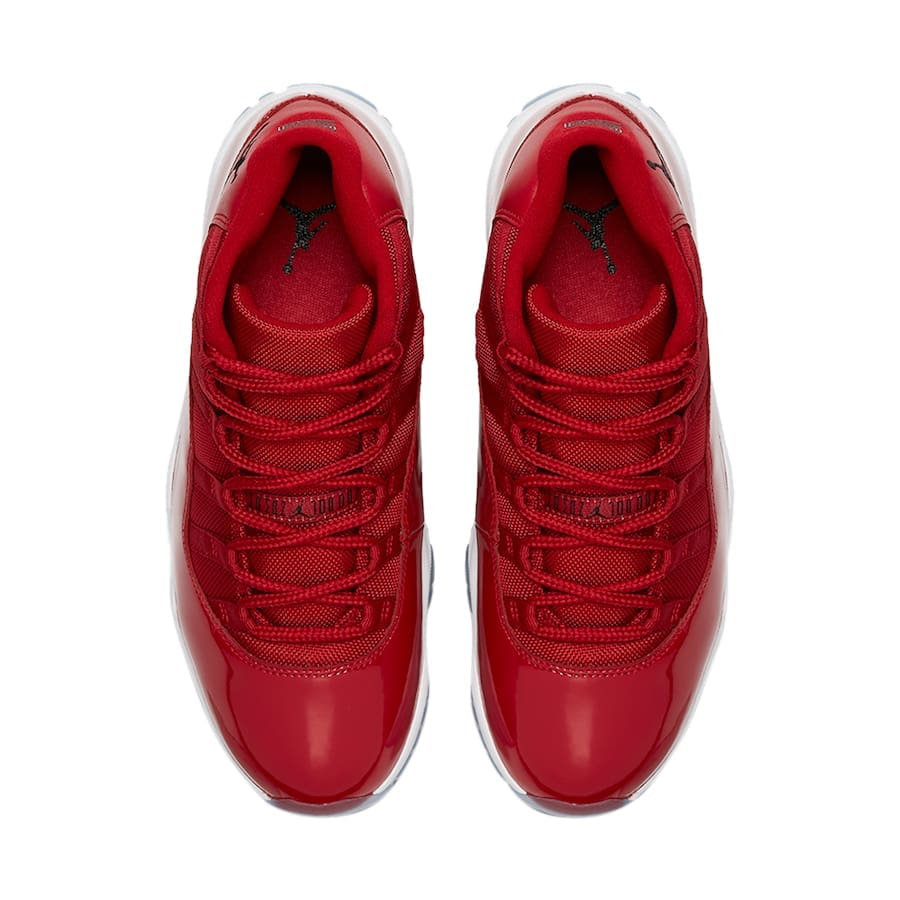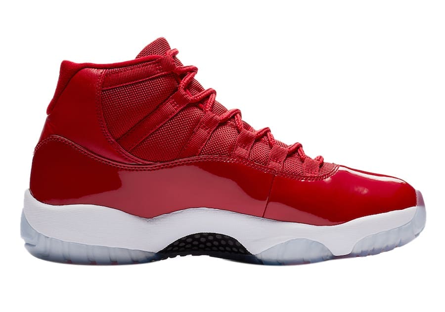 The Air Jordan 11 Win Like u201896 celebrates Michael Jordanu2019s professional supremacy in a color scheme new to the silhouette. Featuring premium patent leather with brilliant red and an icy translucent outsole, this colorway becomes the boldest Air Jordan 11 tribute to Chicago yet. Additional details include black accents on the ankle, tongue, and heel branding, and a white midsole.