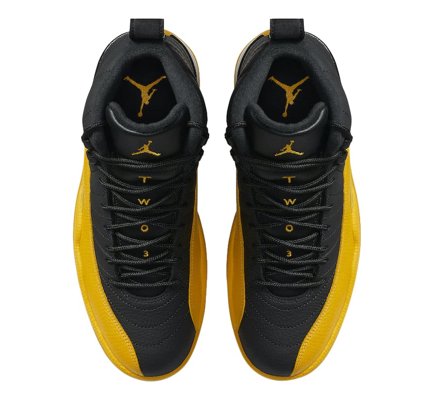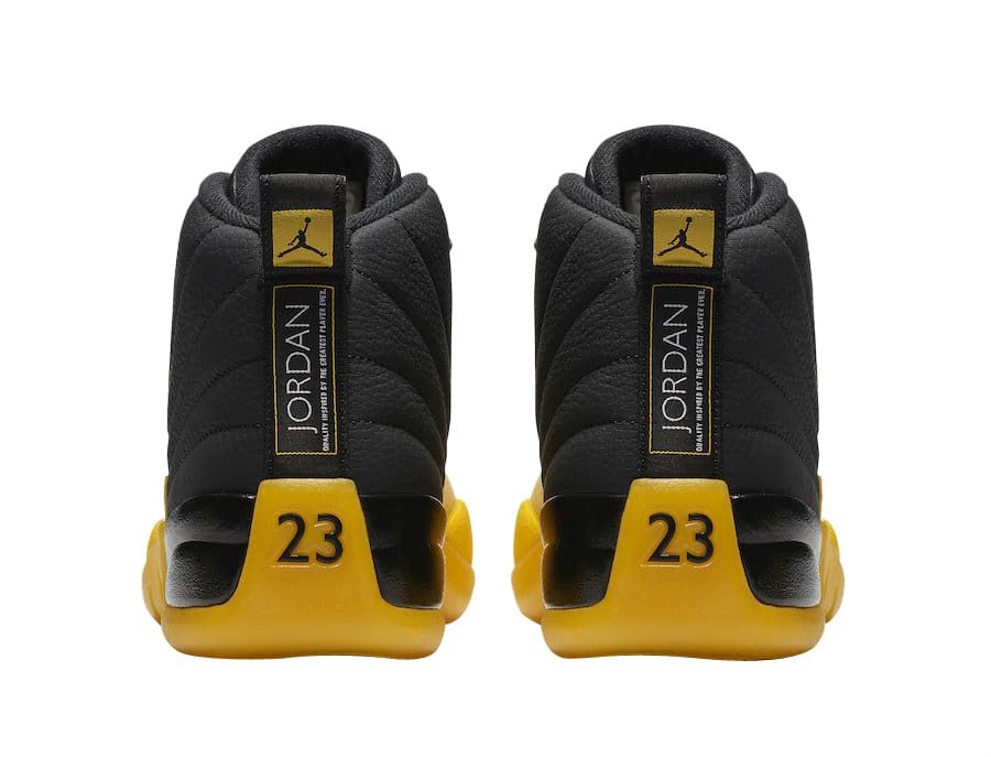 This new colorway of the Air Jordan 12 closely resembles Gary Paytonu2019s player exclusive u201cAwayu201d Air Jordan 12 version during his tenure with the Los Angeles Lakers in 2003-04. The model dons a two-tone theme with a black tumbled leather upper and the striking University Gold applied on the forefoot panel, entire rubber outsole and branded areas.