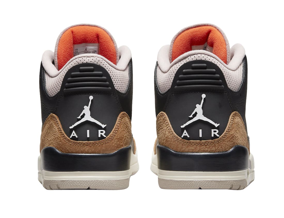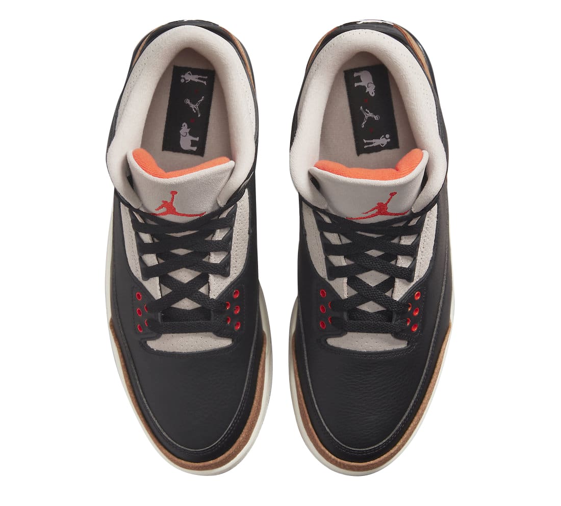 This upcoming take on the Air Jordan 3 presents a familiar color blocking formula. Opting for a modest black leather upper, the emphasis of this pair is with the supporting details such as the light tan suede tongue. This soft shade of brown is matched at the outsole and complemented by the off-white colored midsole. However, the key details that give it the true u201cDesert Elephantu201d flair rest at the overlays and insole. First off, the overlays revamp the Air Jordan 3u2019s signature elephant print with a textured brown. Then, at the insole, Jordan Brand has included a formula tag, giving a nod to elephants.