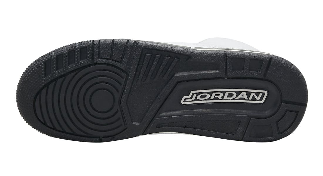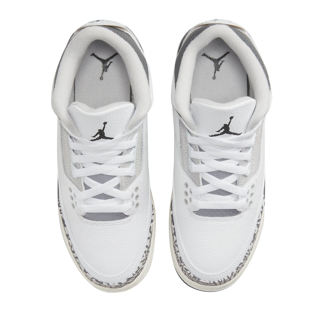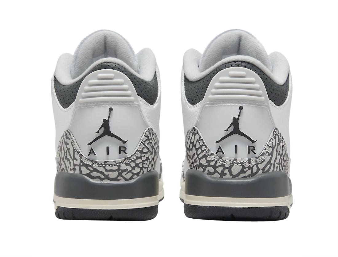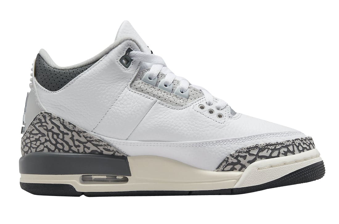 Dressed in a White, Black, Iron, Light Ash Grey, Sail, and Cement Grey color scheme. This offering of theu00a0Air Jordan 3 features a White leather upper with Grey detailing and signature elephant print overlays. A Sail midsole atop a Black rubber outsole completes the design. The shoes will also come with a cartoon elephant removable patch.