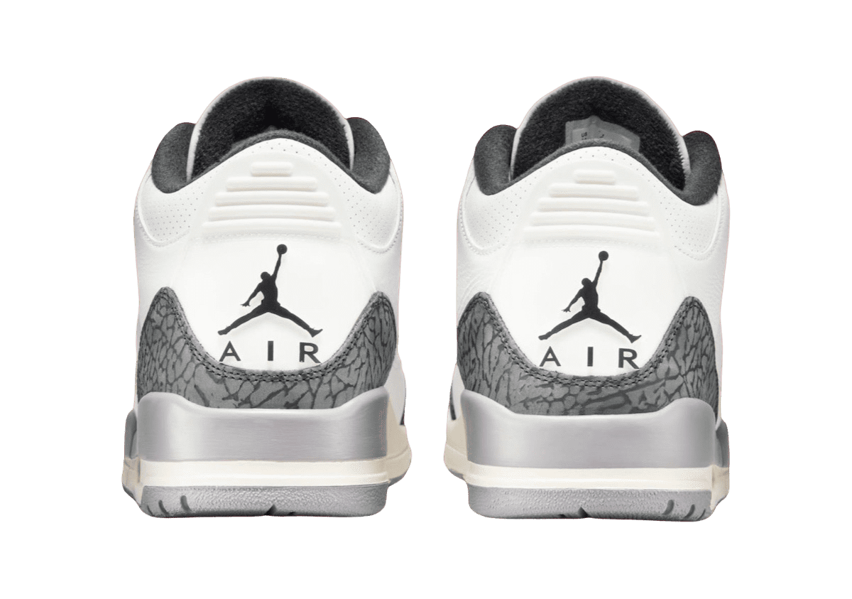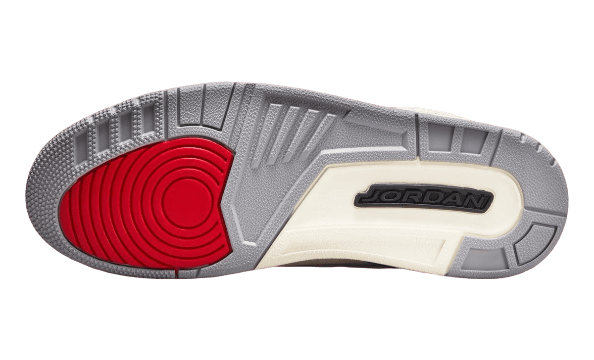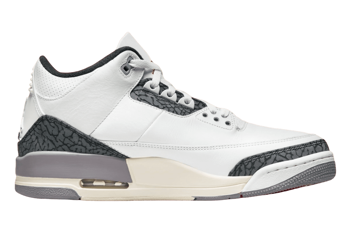 Completing the design is a White midsole showcasing visible Air units, all resting atop a Grey rubber outsole. The combination of colors and textures creates a visually appealing sneaker that pays homage to the iconic Air Jordan 3 silhouette.