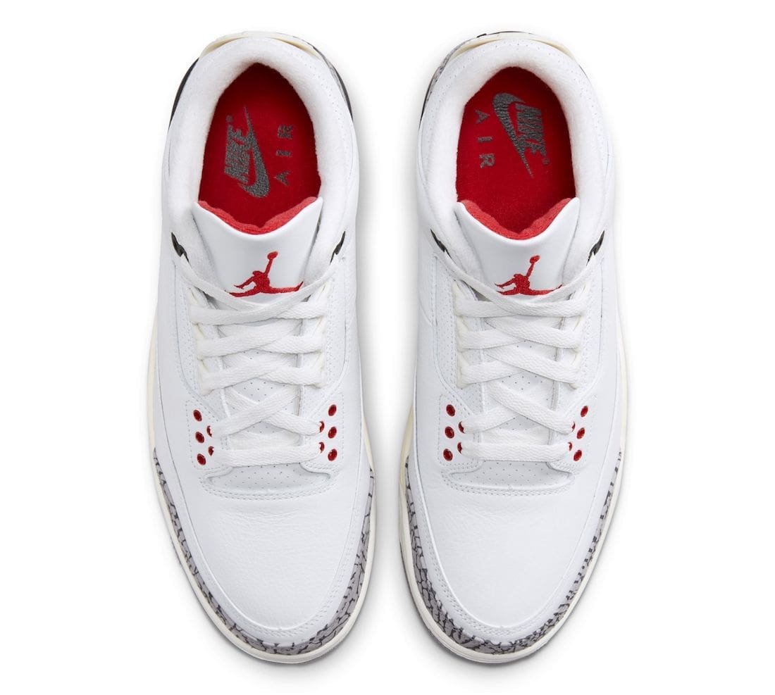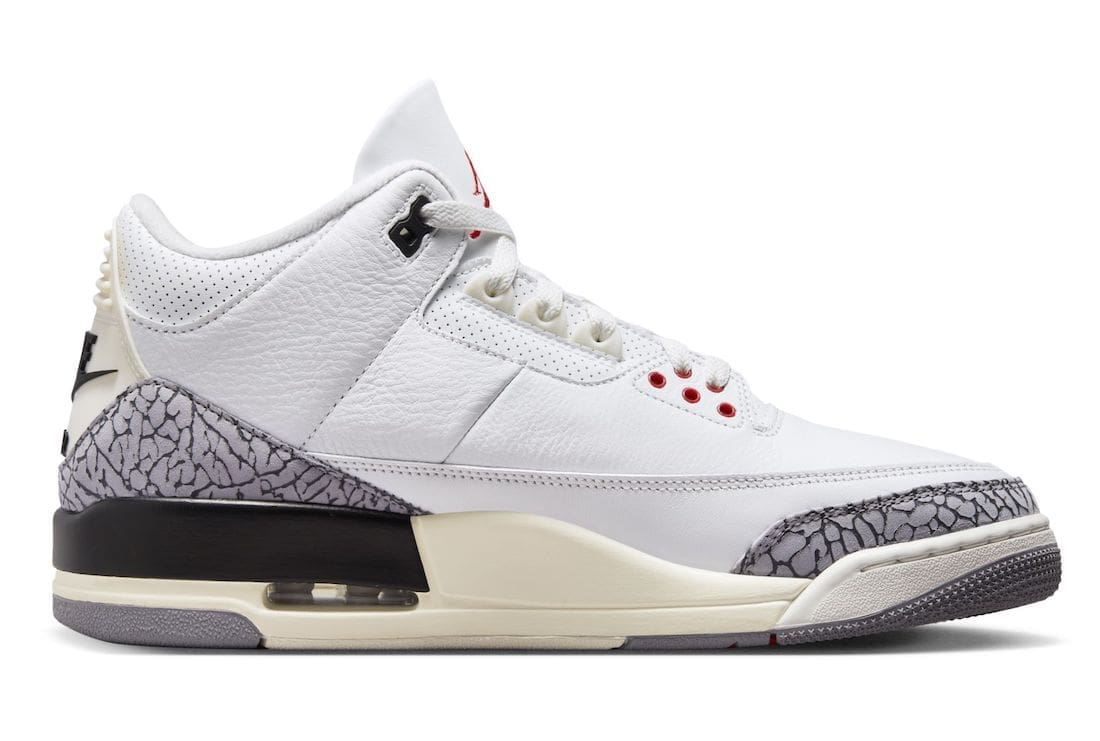 The Jordan 3 Retro White Cement Reimagined will be executed in an official color scheme of u201cSummit White/Fire Red-Cement Grey.u201d Essentially reflective of the OG 1988 edition, the 2023 version will be crafted and constructed to the true OG u201988 specs as it celebrates the releaseu2019s 35th anniversary. Details include a Red Jumpman on the tongues, Nike Air on the heels, elephant print overlays on the toes and heel, White laces and a Red insole with Black Nike Air branding on it. Much like the Air Jordan 1 High OG Lost & Found, this release will also be given a vintage/aged aesthetic as yellowed heel tabs and midsoles will be part of the sneakeru2019s design. The sneakers will also come with special packaging aka a dinged up box with scuffs throughout along with a vintage pamphlet breaking down the design of the Air Jordan 3.