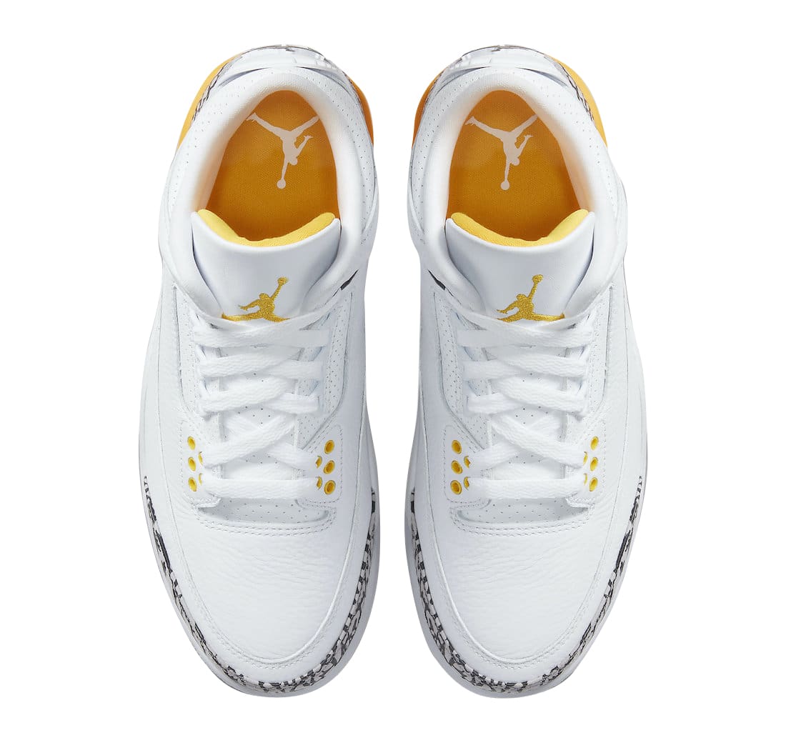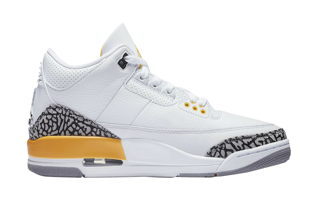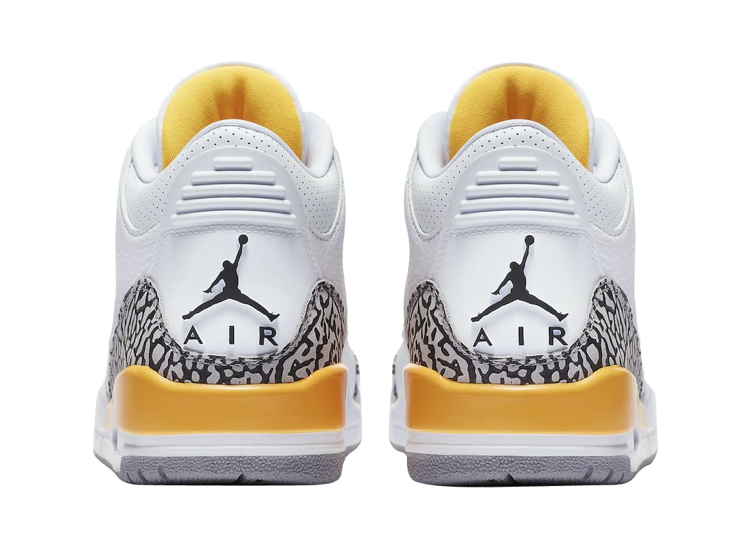 This womenu2019s colorway of the Air Jordan 3 is comprised out of a white tumbled leather upper with the signature black and grey elephant print placed on the toe and heels. The highlight of this Jordan 3 is the addition of Laser Orange on the midsole, lower eyelets, inner tongue, and the Jumpman on the tongues. Black Jumpman logos on the heels, a white midsole, grey rubber outsole, and a Laser Orange Jumpman hangtag finish off the design on this Air Jordan 3.
