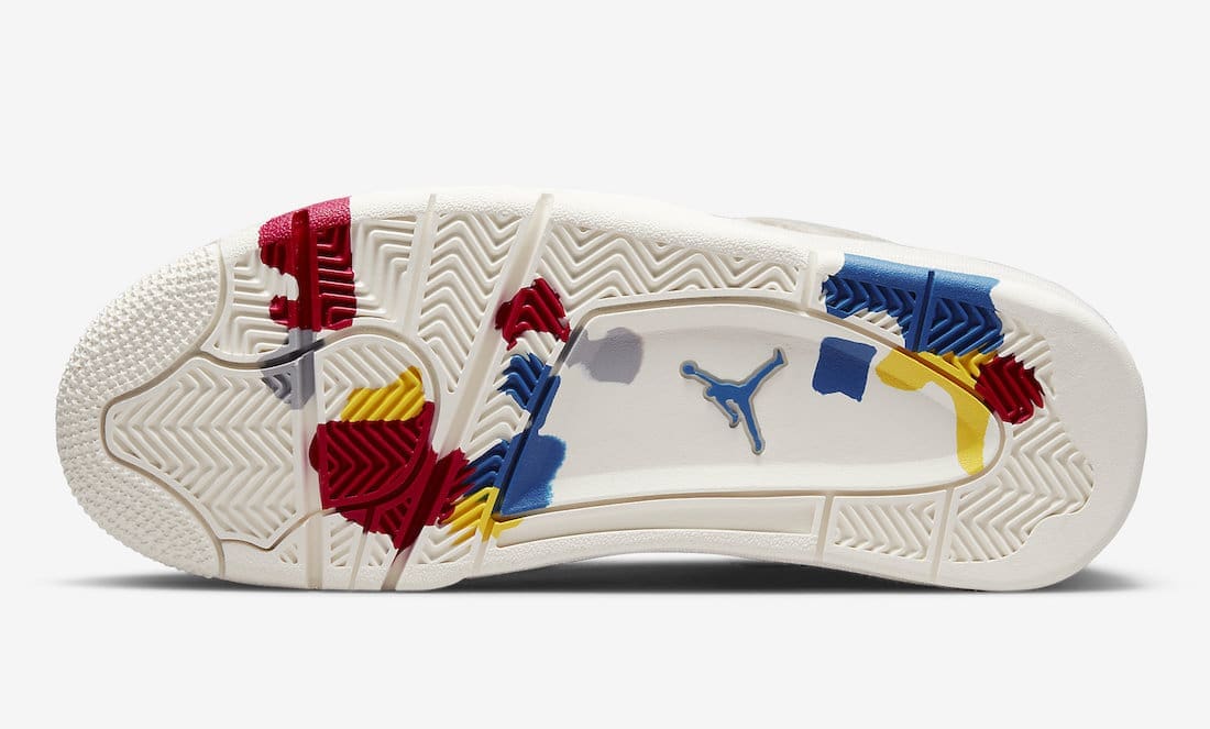 Dressed in a Sail, Cement Grey, and Fire Red color scheme. Thisu00a0Air Jordan 4u00a0swaps out a traditional leather upper and midsole for a clean blank canvas, encouraging customization for the wearer. Additional details includes hits of paint splatter graphics throughout the outsole.