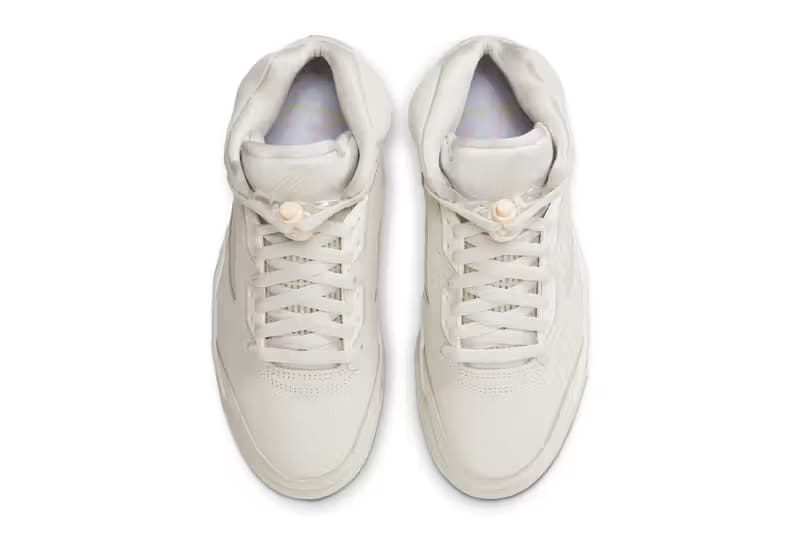 The sneaker features a light bone nubuck upper, enhanced with tonal cream overlays for a neutral and versatile aesthetic. Snakeskin-inspired textures add depth to the Jumpman hangtag, nodding to the Year of the Snakeu2019s significance. Iridescent shark teeth along the midsole introduce a dynamic element, creating subtle flashes of color with every step. The clear rubber outsole ensures a polished finish, tying the luxurious look together.